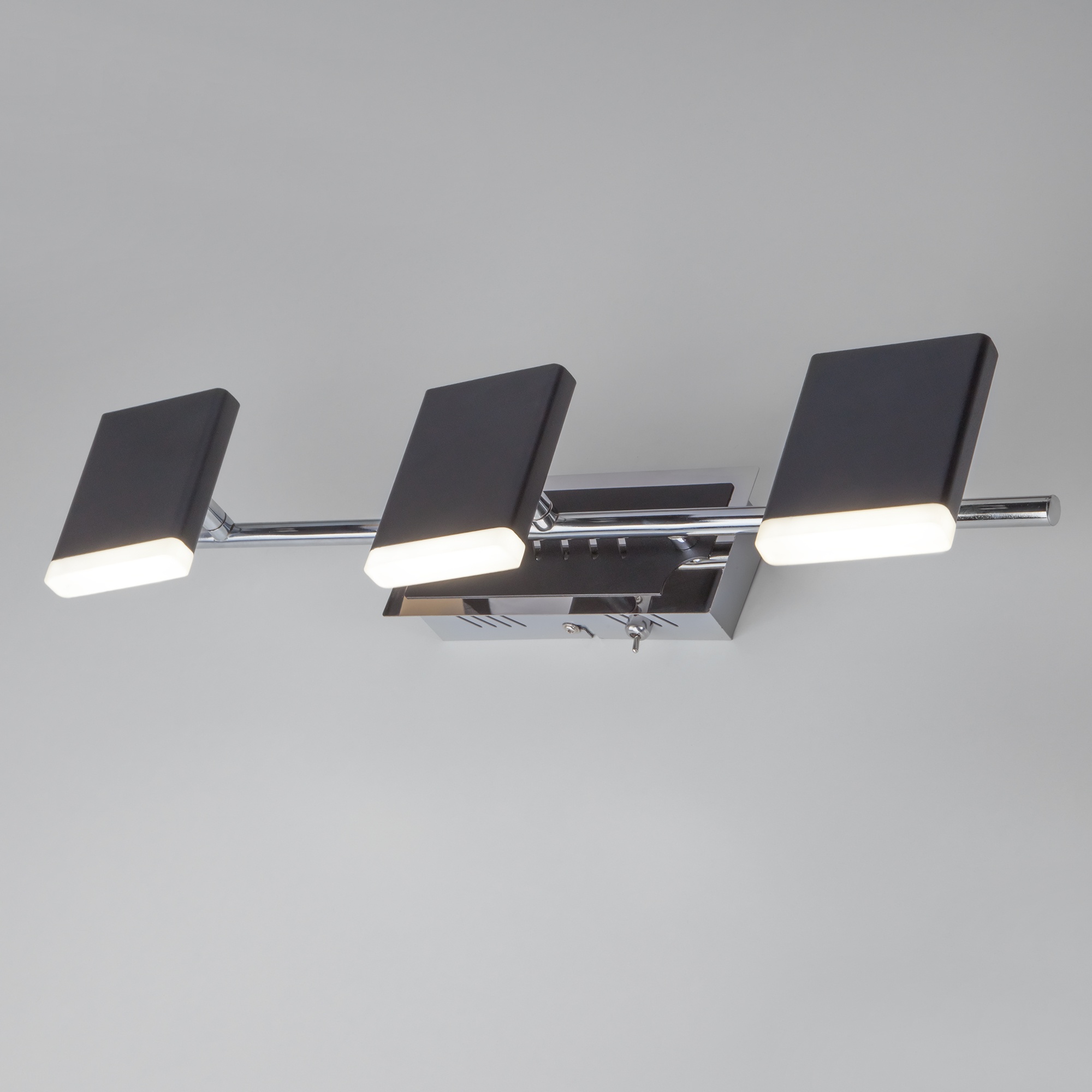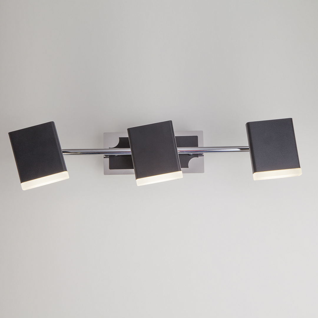 металла черного и хромового цветов. Поверхность арматуры глянцевая. Плафон изготовлен из металла черного цвета. с глянцевой поверхностью. Осветительный прибор рассчитан на освещение пространства площадью 7 кв. м. Тип цоколя используемых ламп LED. Производитель рекомендует использовать лампы мощностью не более 15 Вт. Суммарная мощность светильника составляет 15 Вт. Лампочки входят в комплект. Защита от попадания влаги и пыли внутрь изделия не предусмотрена. Цвет свечения нейтральный белый (4200K). Рекомендуем к применению в кухне, коридоре, спальне, гостиной.