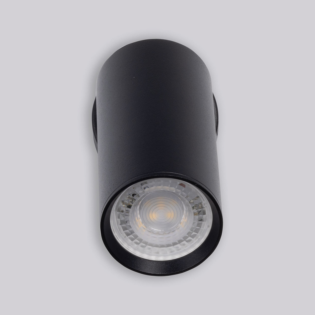 Минималистичный современный дизайн. Контрастный черный цвет делает светильник акцентом на потолке. Поворотный плафон позволяет направлять световой поток в нужную сторону, что создает комфортное освещение. Заменяемый источник света удобен в эксплуатации.