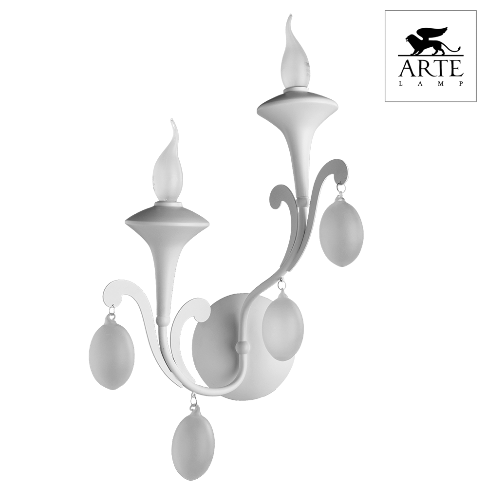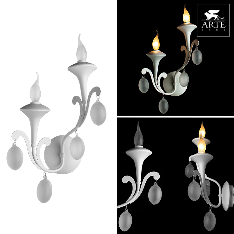 Настенный светильник A3239AP-2WH итальянского производителя Arte Lamp из коллекции MONTMARTRE выполнен в стиле модерн. Арматура светильника выполнена из металла белого цвета. Поверхность арматуры матовая. Плафон изготовлен из стекла белого цвета, имеет форму свечи и матовую поверхность. Декоративные элементы выполнены из хрусталя.Осветительный прибор рассчитан на освещение пространства площадью 4 кв. м. Тип цоколя используемых ламп E14. Производитель рекомендует использовать лампы мощностью не более 40 Вт. Суммарная мощность светильника составляет 80 Вт. Лампочки в комплект не входят. Защита от попадания влаги и пыли внутрь изделия не предусмотрена. Рекомендуем к применению в гостиной, кабинете, спальне.