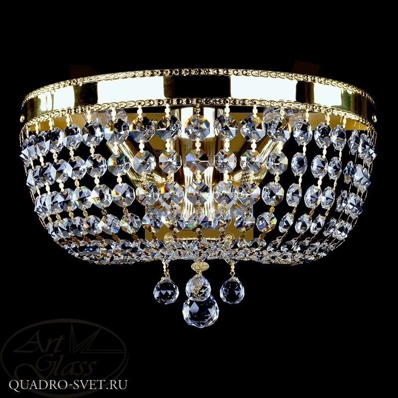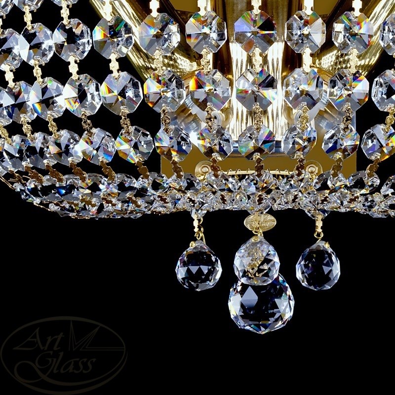 Хрустальное бра в форме корзины, размерами 47 х 21 х 31 см, с 4 лампочками и подвесками Crystal Exclusive или Swarovski Spectra. Хрустальные элементы вместе с мягко блестящими металлическими деталями гарантируют высокий блеск этого изделия. Бра подходит к всем типам интерьеров - классическим и современным, и прекрасно комбинируется с другими типами освещения - например с потолочными хрустальными светильниками.