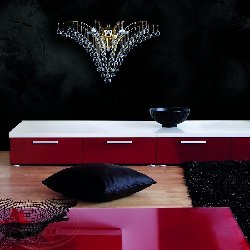 Хрустальное бра в форме корзины, размерами 48 х 22 см, с 4 лампочками и подвесками Crystal Exclusive или Swarovski Spectra. Хрустальные элементы вместе с мягко блестящими металлическими деталями гарантируют высокий блеск этого изделия. Бра подходит к всем типам интерьеров - классическим и современным, и прекрасно комбинируется с другими типами освещения - например с потолочными хрустальными светильниками.