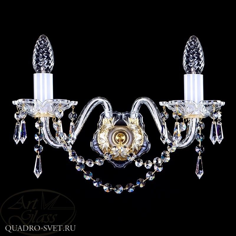 Хрустальное бра размерами 34 х 25 см с 2 лампочками и хрустальными подвесками Crystal Exclusive или Swarovski Spectra. Хрустальные и стеклянные элементы вместе с мягко блестящими металлическими деталями гарантируют высокий блеск этого изделия. Бра подходит к всем типам интерьеров - классическим и современным, и прекрасно комбинируется с другими, не только потолочными светильниками.