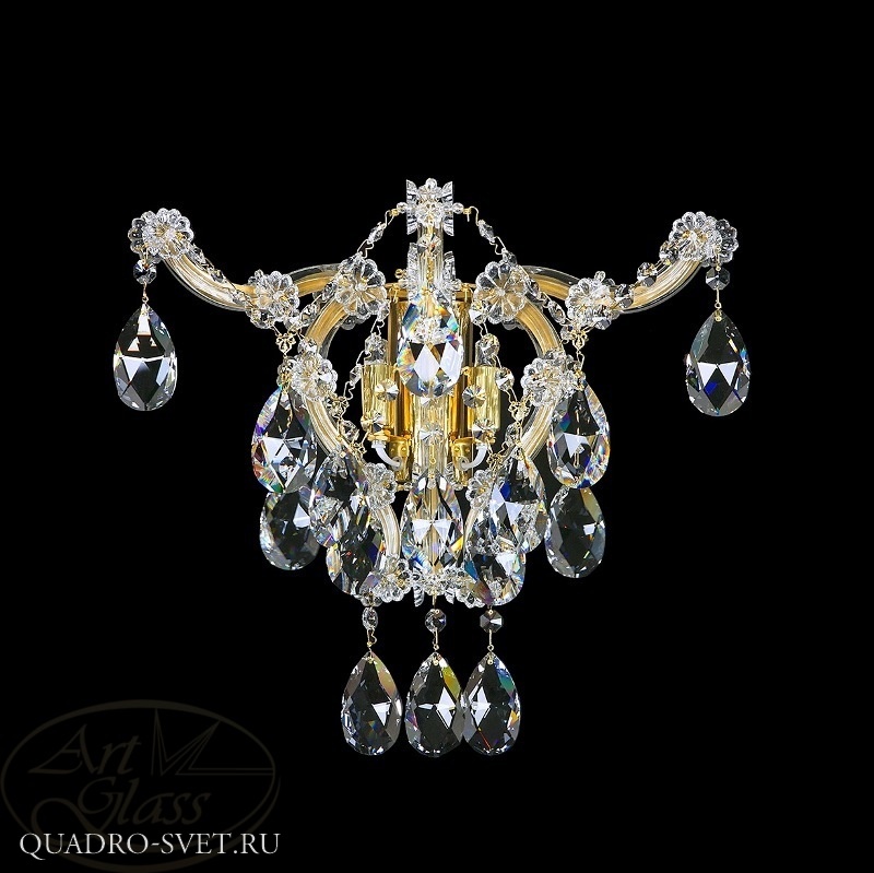 Хрустальное бра Мариа Терезия размерами 35 х 35 см с 2 лампочками и хрустальными подвесками Classic, Crystal Exclusive или Swarovski Spectra. Хрустальные и стеклянные элементы вместе с мягко блестящими металлическими деталями гарантируют высокий блеск этого терезиянского изделия. Бра Мариа Терезия подходит к всем типам интерьеров - классическим и современным, и прекрасно комбинируется с другими типами освещений - потолочными или настольными.