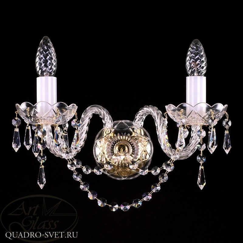 Хрустальное бра размерами 34 х 25 см с 2 лампочками и хрустальными подвесками Crystal Exclusive или Swarovski Spectra. Хрустальные и стеклянные элементы вместе с мягко блестящими металлическими деталями гарантируют высокий блеск этого изделия. Бра подходит к всем типам интерьеров - классическим и современным, и прекрасно комбинируется с другими, не только потолочными светильниками.