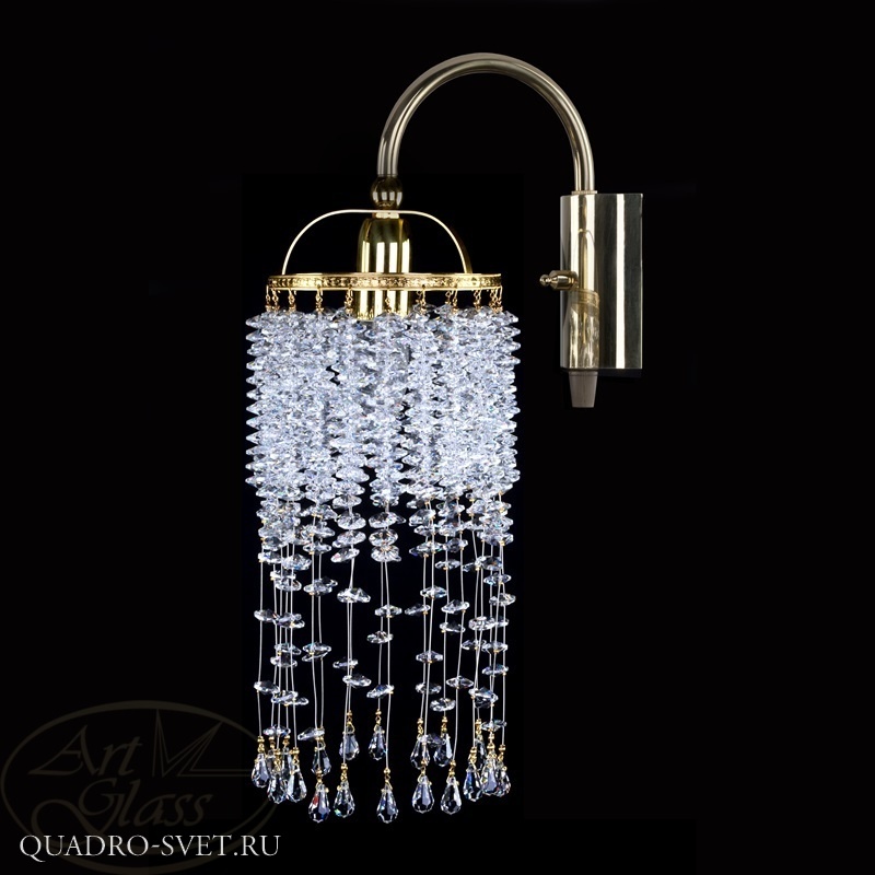 Хрустальное бра размерами 13 х 41 см с 1 лампочкой и хрустальными подвесками Crystal Exclusive или Swarovski Spectra. Хрустальные и стеклянные элементы вместе с мягко блестящими металлическими деталями гарантируют высокий блеск этого изделия. Бра подходит к всем типам интерьеров - классическим и современным, и прекрасно комбинируется с другими типами освещения - потолочными светильниками или настольными лампами.