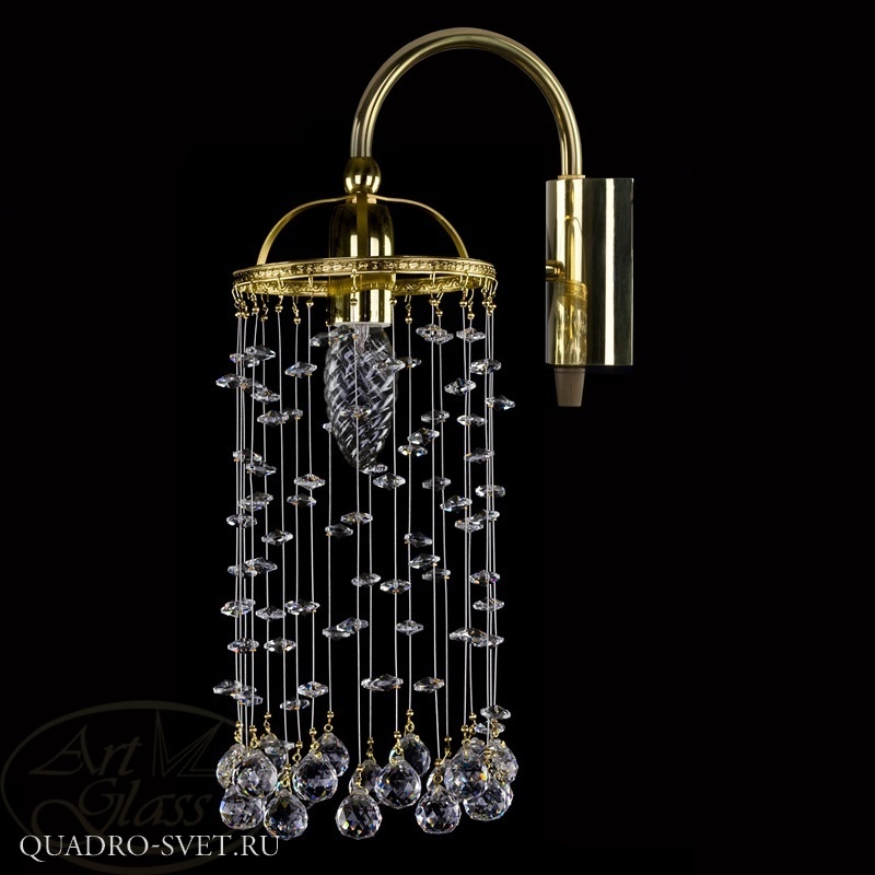 Хрустальное бра размерами 12 х 40 см с 1 лампочкой и хрустальными подвесками Crystal Exclusive или Swarovski Spectra. Хрустальные и стеклянные элементы вместе с мягко блестящими металлическими деталями гарантируют высокий блеск этого изделия. Бра подходит к всем типам интерьеров - классическим и современным, и прекрасно комбинируется с другими типами освещения - потолочными светильниками или настольными лампами.