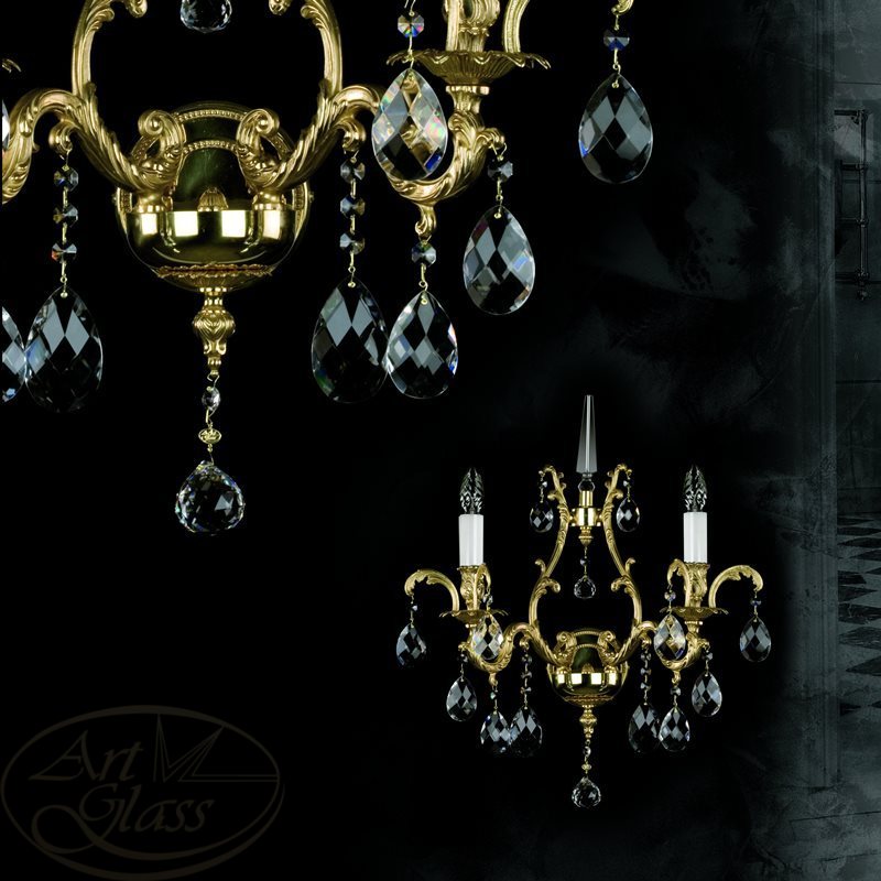 Латунное бра размерами 48 x 56 см с 2 лампочками украшено хрустальными подвесками Classic, Crystal Exclusive или Swarovski Spectra. Литые компоненты в золотой, серебрянной, старинной или других отделках поверхности, комбинированные с блестящими хрустальными подвесками, гарантируют богатый блеск этого изделия в классических и современных интерьерах. Этот латунный настенный светильник можно комбинировать с другими люстрами и светильниками.