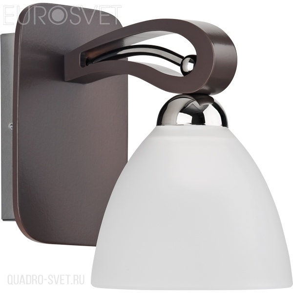 металла и дерева цветов хром и венге. Поверхность арматуры матовая. Плафон изготовлен из стекла белого цвета, имеет форму полусферы и матовую поверхность. Направлен вниз. Осветительный прибор рассчитан на освещение пространства площадью 3 кв. м. Тип цоколя используемых ламп E27. Производитель рекомендует использовать лампы мощностью не более 60 Вт. Суммарная мощность светильника составляет 60 Вт. Лампочки в комплект не входят. Защита от попадания влаги и пыли внутрь изделия не предусмотрена. Рекомендуем к применению в гостиной, кабинете, спальне.