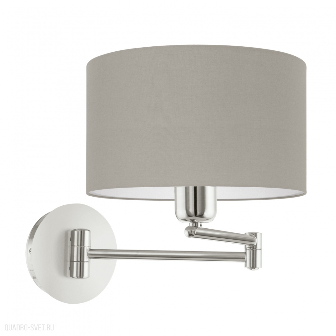 Бра PASTERI коленчатое, 1х60W (E27), Ø230, H260, A595, никель матовый/текстиль, серо-коричневый