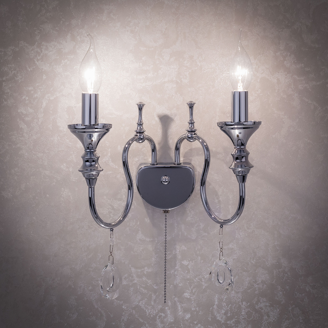 Настенный светильник CL437321 датского производителя CITILUX из коллекции Рига выполнен в стиле модерн. Арматура светильника выполнена из металла цвета хром. Поверхность арматуры глянцевая. Плафон отсутствует. Осветительный прибор рассчитан на освещение пространства площадью 6 кв. м. Тип цоколя используемых ламп E14. Производитель рекомендует использовать лампы мощностью не более 60 Вт. Суммарная мощность светильника составляет 120 Вт. Лампочки в комплект не входят. Защита от попадания влаги и пыли внутрь изделия не предусмотрена. Имеется шнуровой выключатель. Рекомендуем к применению в гостиной, кабинете, спальне.