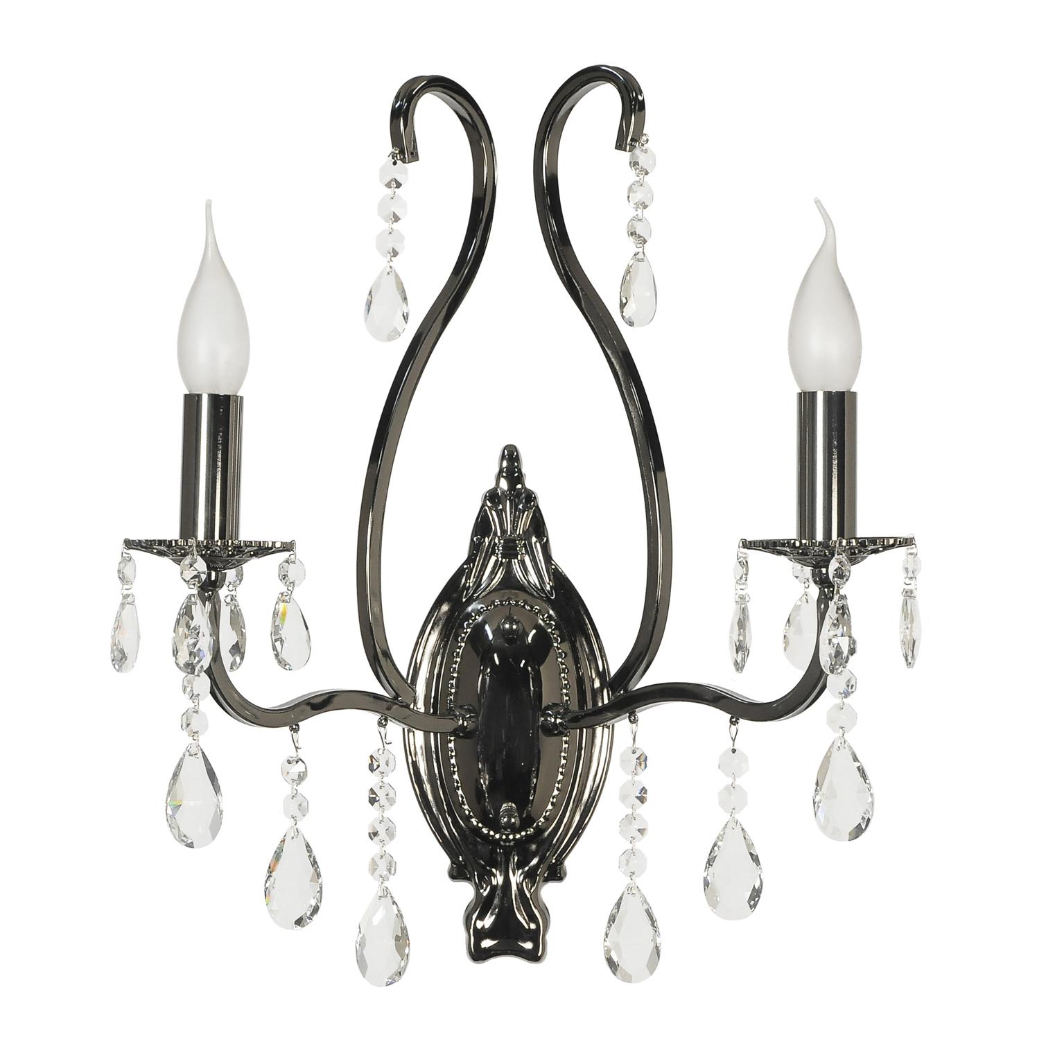 металла цвета графит. Поверхность арматуры глянцевая. Плафон отсутствует. Декоративные элементы выполнены из прозрачного хрусталя. Осветительный прибор рассчитан на освещение пространства площадью 4 кв. м. Тип цоколя используемых ламп E14. Производитель рекомендует использовать лампы мощностью не более 40 Вт. Суммарная мощность светильника составляет 80 Вт. Лампочки в комплект не входят. Защита от попадания влаги и пыли внутрь изделия не предусмотрена. Рекомендуем к применению в гостиной, кабинете, спальне.