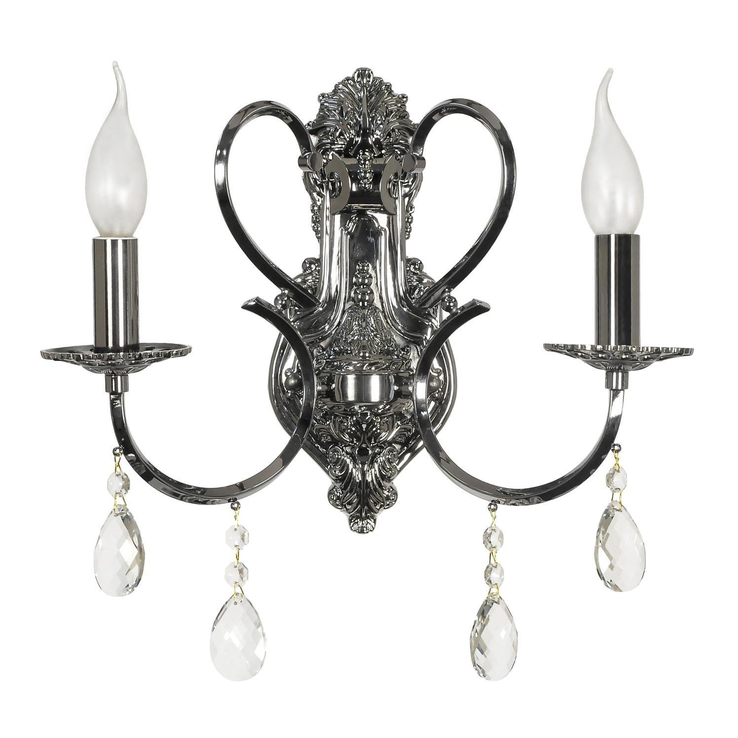 металла цвета графит. Поверхность арматуры глянцевая. Плафон отсутствует. Декоративные элементы выполнены из прозрачного хрусталя. Осветительный прибор рассчитан на освещение пространства площадью 4 кв. м. Тип цоколя используемых ламп E14. Производитель рекомендует использовать лампы мощностью не более 40 Вт. Суммарная мощность светильника составляет 80 Вт. Лампочки в комплект не входят. Защита от попадания влаги и пыли внутрь изделия не предусмотрена. Рекомендуем к применению в гостиной, кабинете, спальне.