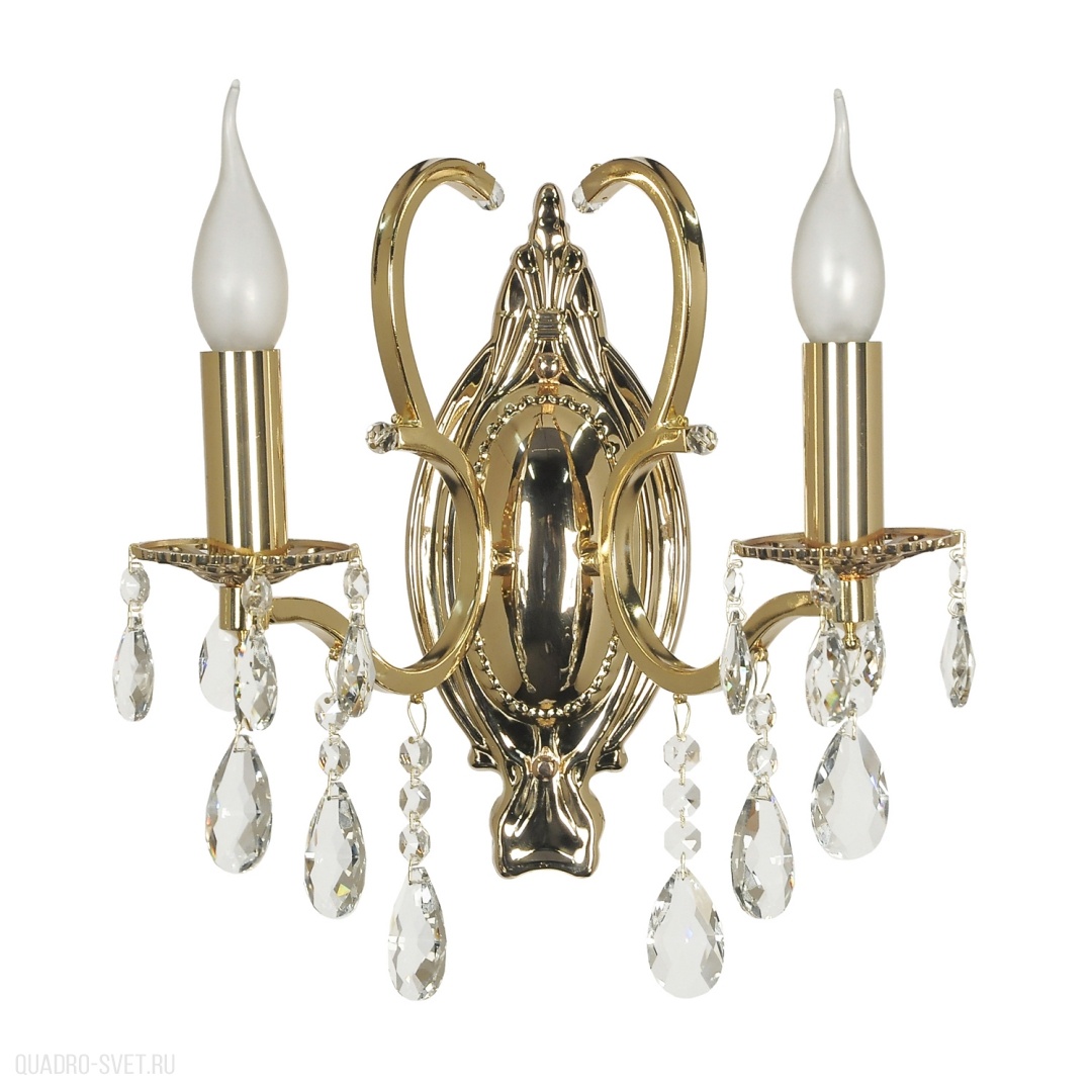 металла золотого цвета. Поверхность арматуры матовая. Плафон отсутствует. Декоративные элементы выполнены из прозрачного хрусталя. Осветительный прибор рассчитан на освещение пространства площадью 4 кв. м. Тип цоколя используемых ламп E14. Производитель рекомендует использовать лампы мощностью не более 40 Вт. Суммарная мощность светильника составляет 80 Вт. Лампочки в комплект не входят. Защита от попадания влаги и пыли внутрь изделия не предусмотрена. Рекомендуем к применению в гостиной, кабинете, спальне.