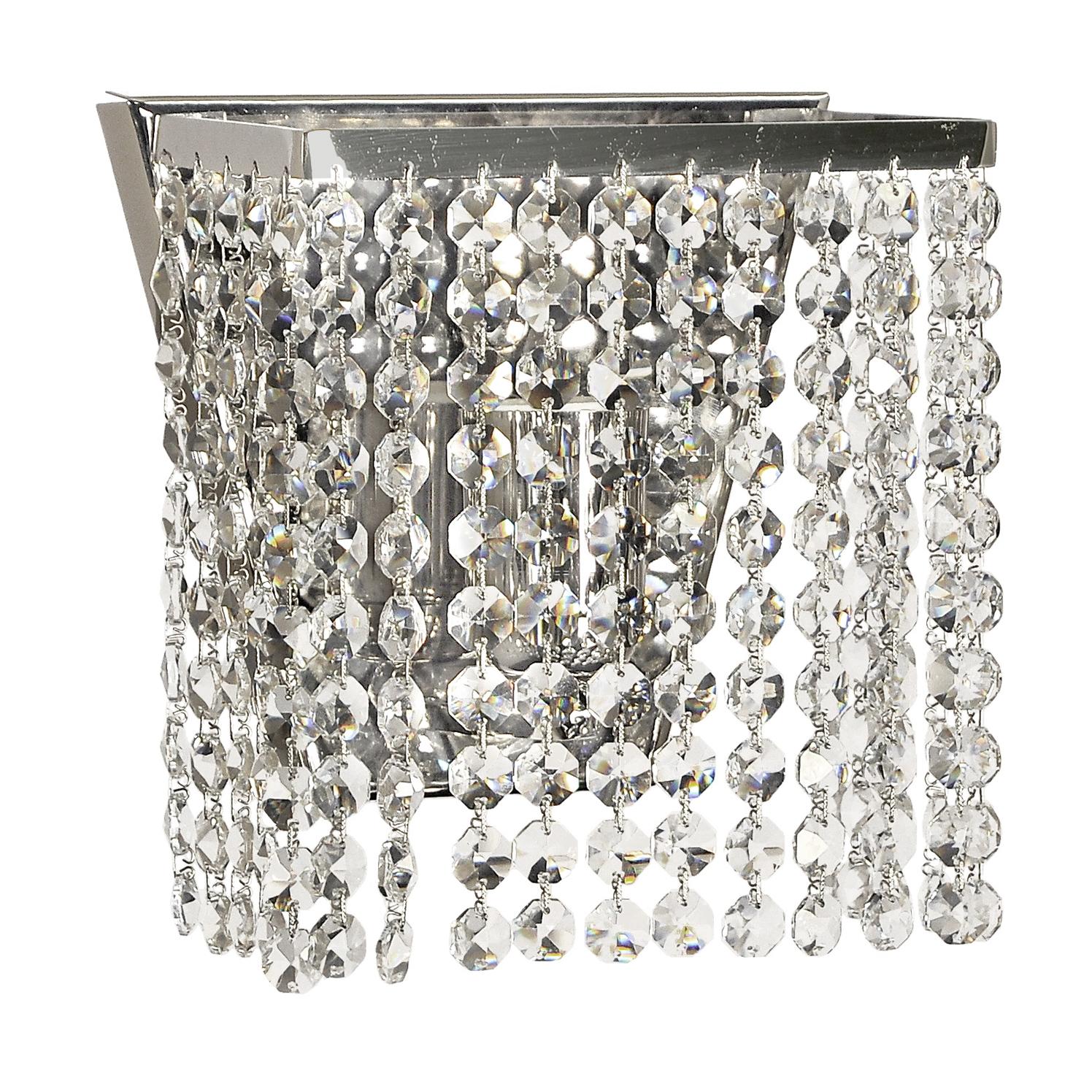 латуни цвета никель. Поверхность арматуры матовая. Плафон изготовлен из хрусталя прозрачного цвета. с глянцевой поверхностью. Декоративные элементы выполнены из прозрачного хрусталя. Осветительный прибор рассчитан на освещение пространства площадью 3 кв. м. Тип цоколя используемых ламп E27. Производитель рекомендует использовать лампы мощностью не более 60 Вт. Суммарная мощность светильника составляет 60 Вт. Лампочки в комплект не входят. Защита от попадания влаги и пыли внутрь изделия не предусмотрена. Рекомендуем к применению в гостиной, кабинете, прихожей, спальне.