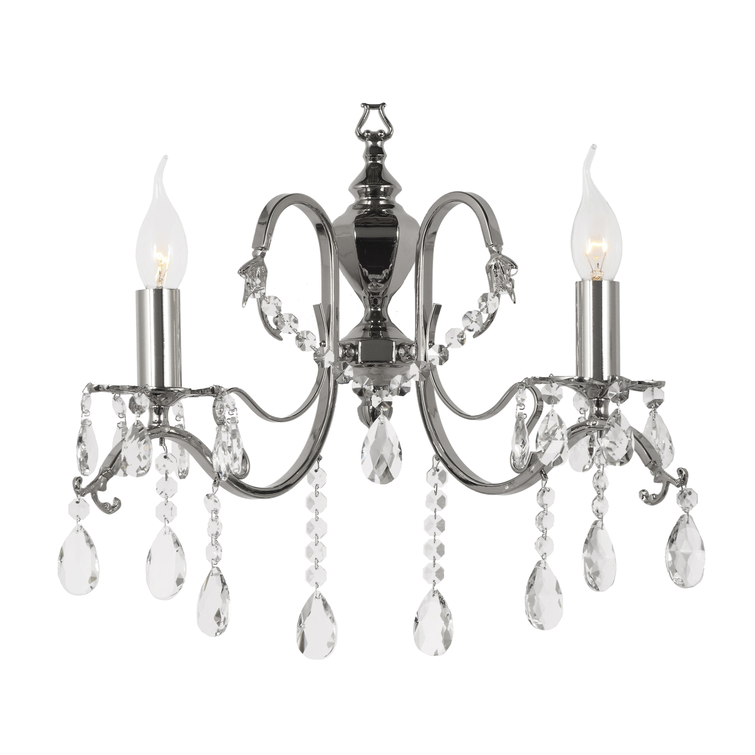 металла цвета никель. Поверхность арматуры матовая. Плафон отсутствует. Декоративные элементы выполнены из прозрачного хрусталя. Осветительный прибор рассчитан на освещение пространства площадью 4 кв. м. Тип цоколя используемых ламп E14. Производитель рекомендует использовать лампы мощностью не более 40 Вт. Суммарная мощность светильника составляет 80 Вт. Лампочки в комплект не входят. Защита от попадания влаги и пыли внутрь изделия не предусмотрена. Рекомендуем к применению в гостиной, кабинете, спальне.