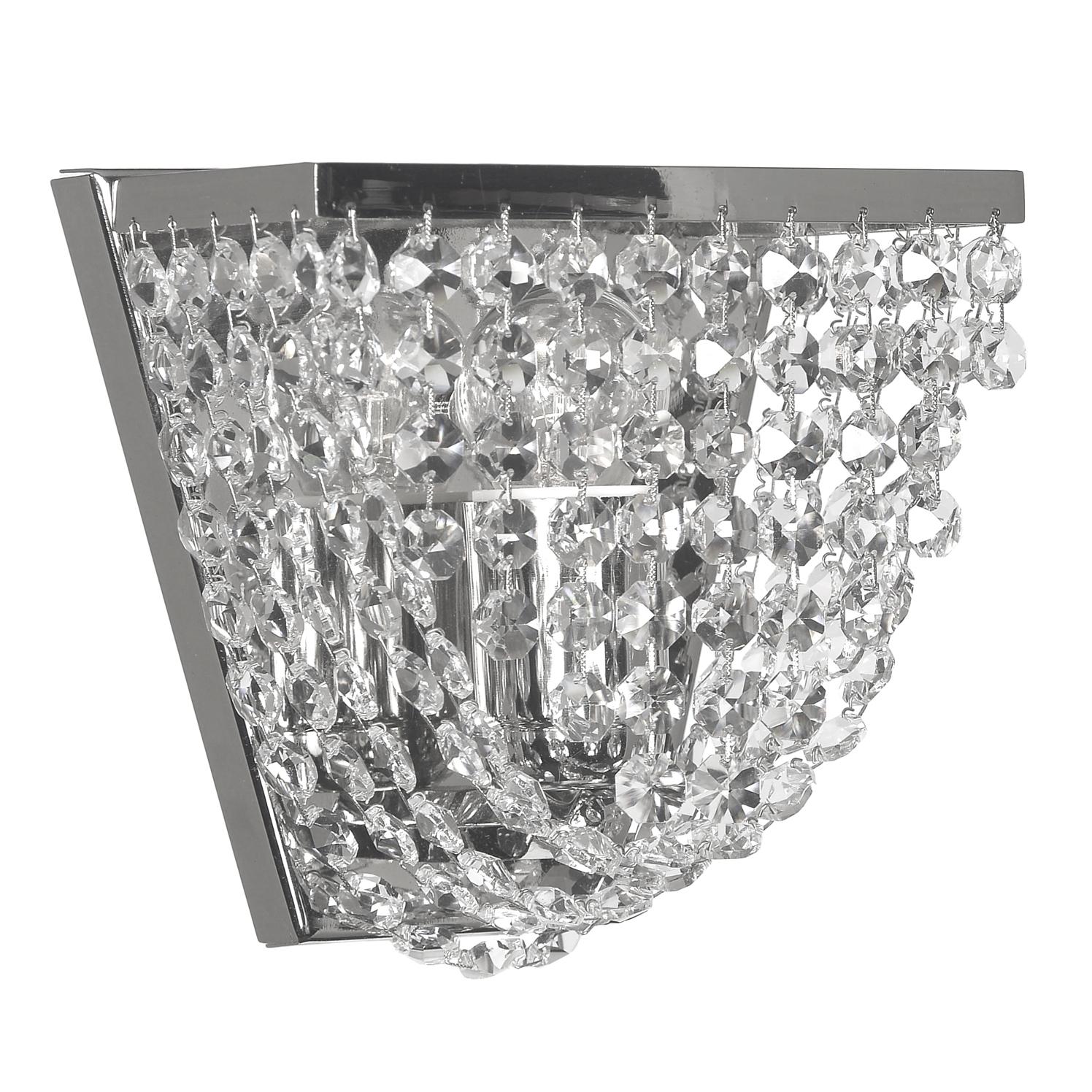 металла цвета никель. Поверхность арматуры глянцевая. Плафон изготовлен из хрусталя прозрачного цвета. с глянцевой поверхностью. Декоративные элементы выполнены из прозрачного хрусталя. Осветительный прибор рассчитан на освещение пространства площадью 3 кв. м. Тип цоколя используемых ламп E27. Производитель рекомендует использовать лампы мощностью не более 60 Вт. Суммарная мощность светильника составляет 60 Вт. Лампочки в комплект не входят. Защита от попадания влаги и пыли внутрь изделия не предусмотрена. Рекомендуем к применению в гостиной, кабинете, прихожей, спальне.