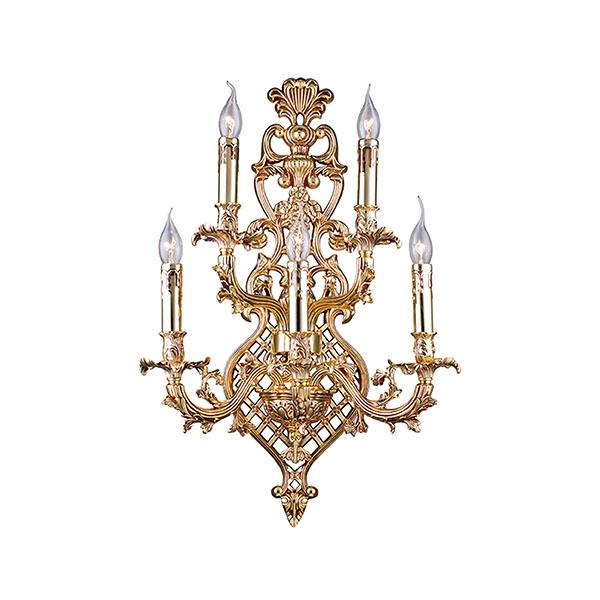 металла золотого цвета. Поверхность арматуры глянцевая. Плафон отсутствует. Осветительный прибор рассчитан на освещение пространства площадью 10 кв. м. Тип цоколя используемых ламп E14. Производитель рекомендует использовать лампы мощностью не более 40 Вт. Суммарная мощность светильника составляет 200 Вт. Лампочки в комплект не входят. Защита от попадания влаги и пыли внутрь изделия не предусмотрена. Рекомендуем к применению в гостиной, спальне, прихожей.