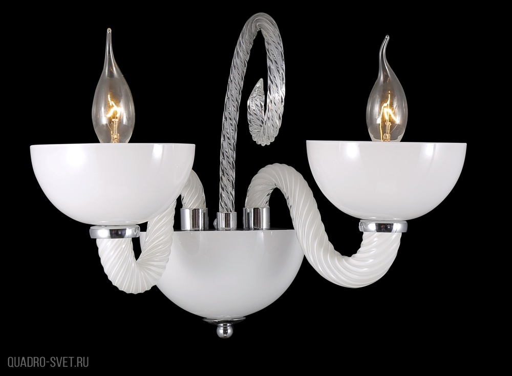 стекла и металла белого и хромового цветов. Поверхность арматуры глянцевая. Плафон отсутствует. Декоративные элементы выполнены из стекла. Осветительный прибор рассчитан на освещение пространства площадью 6 кв. м. Тип цоколя используемых ламп E14. Производитель рекомендует использовать лампы мощностью не более 60 Вт. Суммарная мощность светильника составляет 120 Вт. Лампочки в комплект не входят. Защита от попадания влаги и пыли внутрь изделия не предусмотрена. Рекомендуем к применению в гостиной, спальне, прихожей, коридоре.