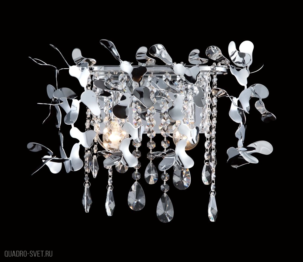 металла цвета хром. Поверхность арматуры глянцевая. Плафон изготовлен из металла цвета хром. Декоративные элементы выполнены из прозрачного хрусталя. Осветительный прибор рассчитан на освещение пространства площадью 6 кв. м. Тип цоколя используемых ламп E14. Производитель рекомендует использовать лампы мощностью не более 60 Вт. Суммарная мощность светильника составляет 120 Вт. Лампочки в комплект не входят. Защита от попадания влаги и пыли внутрь изделия не предусмотрена. Рекомендуем к применению в гостиной, спальне, прихожей, коридоре.