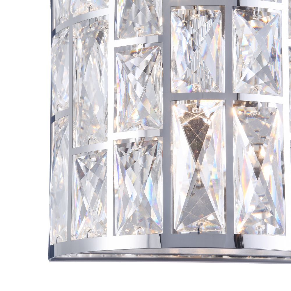 Настенный светильник MOD184-WL-02-CH производства Maytoni (Германия) из коллекции Gelid выполнен в стиле модерн. Арматура светильника выполнена из металла цвета хром. Поверхность арматуры глянцевая. Плафон изготовлен из хрусталя прозрачного цвета, имеет цилиндрическую форму и рельефную поверхность. Направлен в стороны. Декоративные элементы выполнены из прозрачного хрусталя.Осветительный прибор рассчитан на освещение пространства площадью 4 кв. м. Тип цоколя используемых ламп G9. Производитель рекомендует использовать лампы мощностью не более 40 Вт. Суммарная мощность светильника составляет 80 Вт. Лампочки входят в комплект. Защита от попадания влаги и пыли внутрь изделия не предусмотрена. Рекомендуем к применению в гостиной, кабинете, прихожей, спальне.