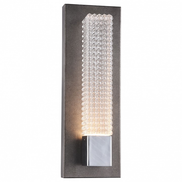 Светодиодный настенный светильник 2082-1W производства Favourite (Германия) из коллекции Groove выполнен в современном стиле. Арматура светильника выполнена из металла серебряного и черного цветов. Поверхность арматуры глянцево-матовая. Плафон изготовлен из стекла прозрачного цвета, имеет форму прямоугольной призмы и рельефную поверхность. Направлен вверх. Осветительный прибор рассчитан на освещение пространства площадью 2 кв. м. Тип цоколя используемых ламп LED. Производитель рекомендует использовать лампы мощностью не более 4,8 Вт. Суммарная мощность светильника составляет 4,8 Вт. Лампочки входят в комплект. Защита от попадания влаги и пыли внутрь изделия не предусмотрена. Рекомендуем к применению в гостиной, кабинете, прихожей, спальне.