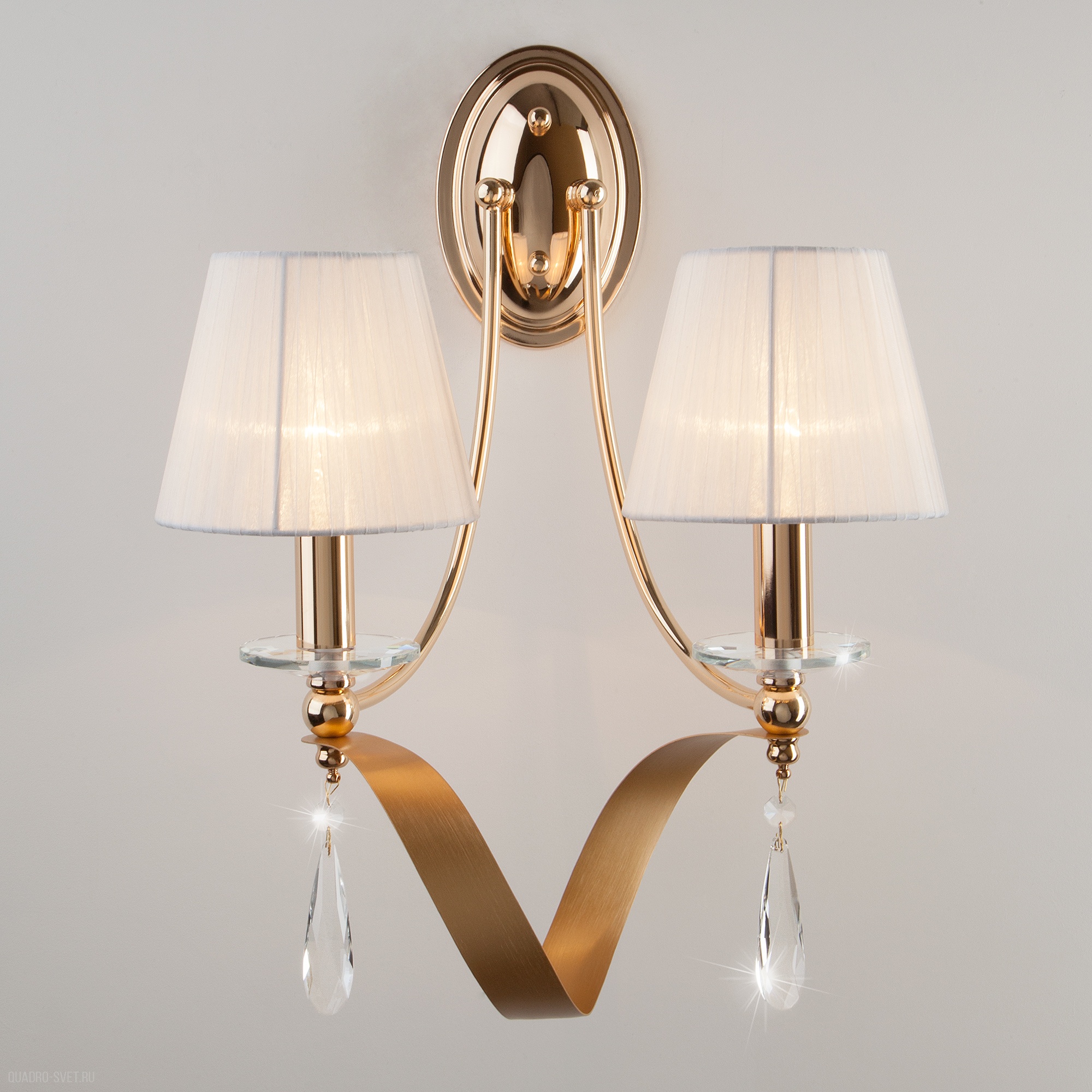 Настенный светильник 60063/2 золото от производителя Eurosvet (КНР) из коллекции Adelia исполнен в стиле модерн. Арматура светильника выполнена из