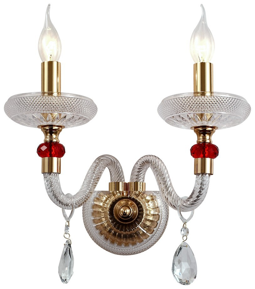 Настенный светильник WE181.02.301 немецкого производителя Wertmark из коллекции LUDMILA исполнен в классическом стиле. Арматура светильника выполнена из стекла и металла золотого и красного цветов. Поверхность арматуры глянцевая. Плафон отсутствует. Декоративные элементы выполнены из прозрачного хрусталя. Осветительный прибор рассчитан на освещение пространства площадью 4 кв. м. Тип цоколя используемых ламп E14. Производитель рекомендует использовать лампы мощностью не более 40 Вт. Суммарная мощность светильника составляет 80 Вт. Лампочки в комплект не входят. Защита от попадания влаги и пыли внутрь изделия не предусмотрена. Рекомендуем к применению в гостиной, спальне, коридоре.