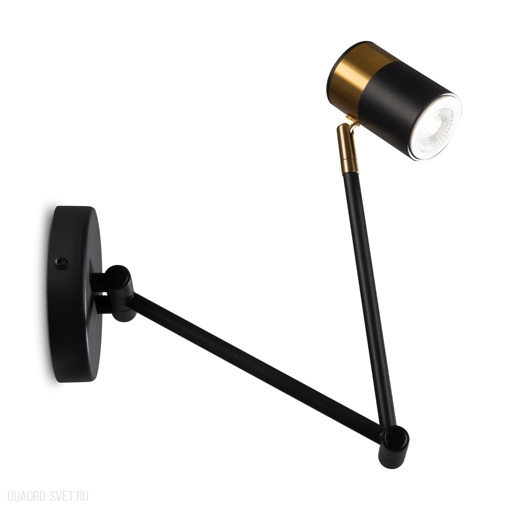 Арматура и плафоны из металла. Черный цвет дополнен латунной окантовкой. Поворотные плафоны и арматура позволяют видоизменять композицию и регулировать направление светового потока. Источник света – лампа GU10.