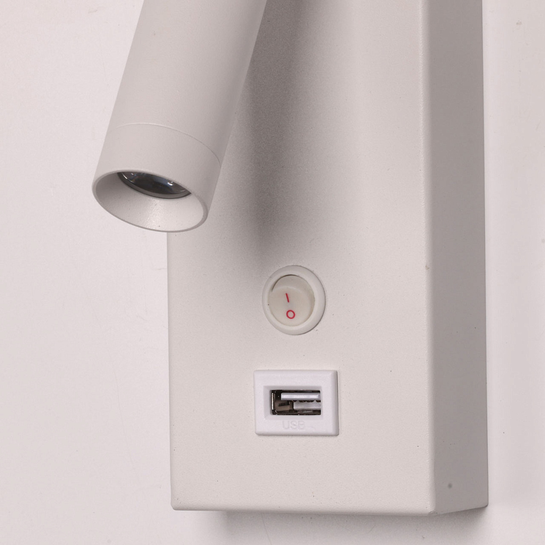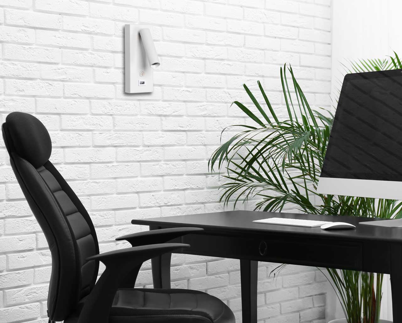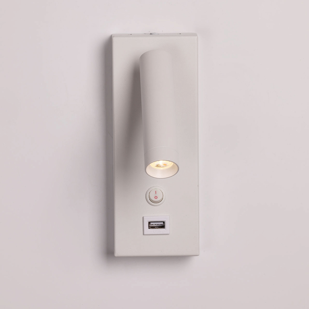 Минималистичный современный дизайн. Возможность регулировать направление света. Светильник оснащен индивидуальным выключателем и USB-портом, что делает его особенно удобным и комфортным. Светодиодный источник света экономичен и безопасен.