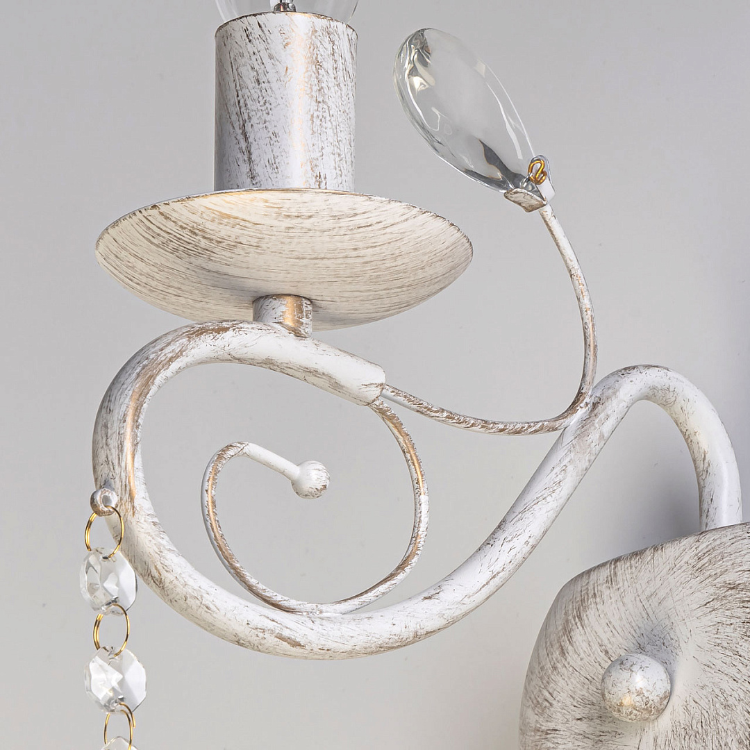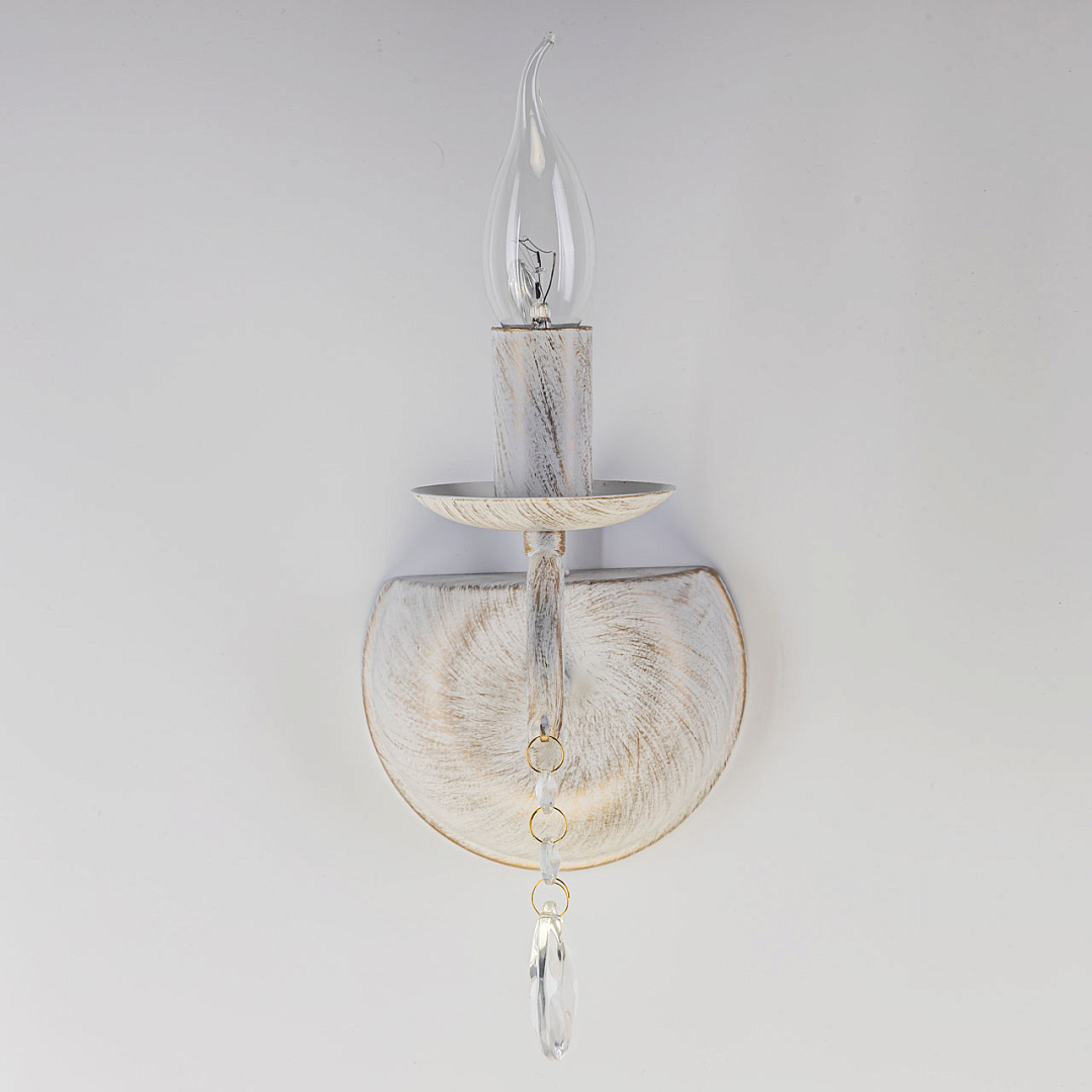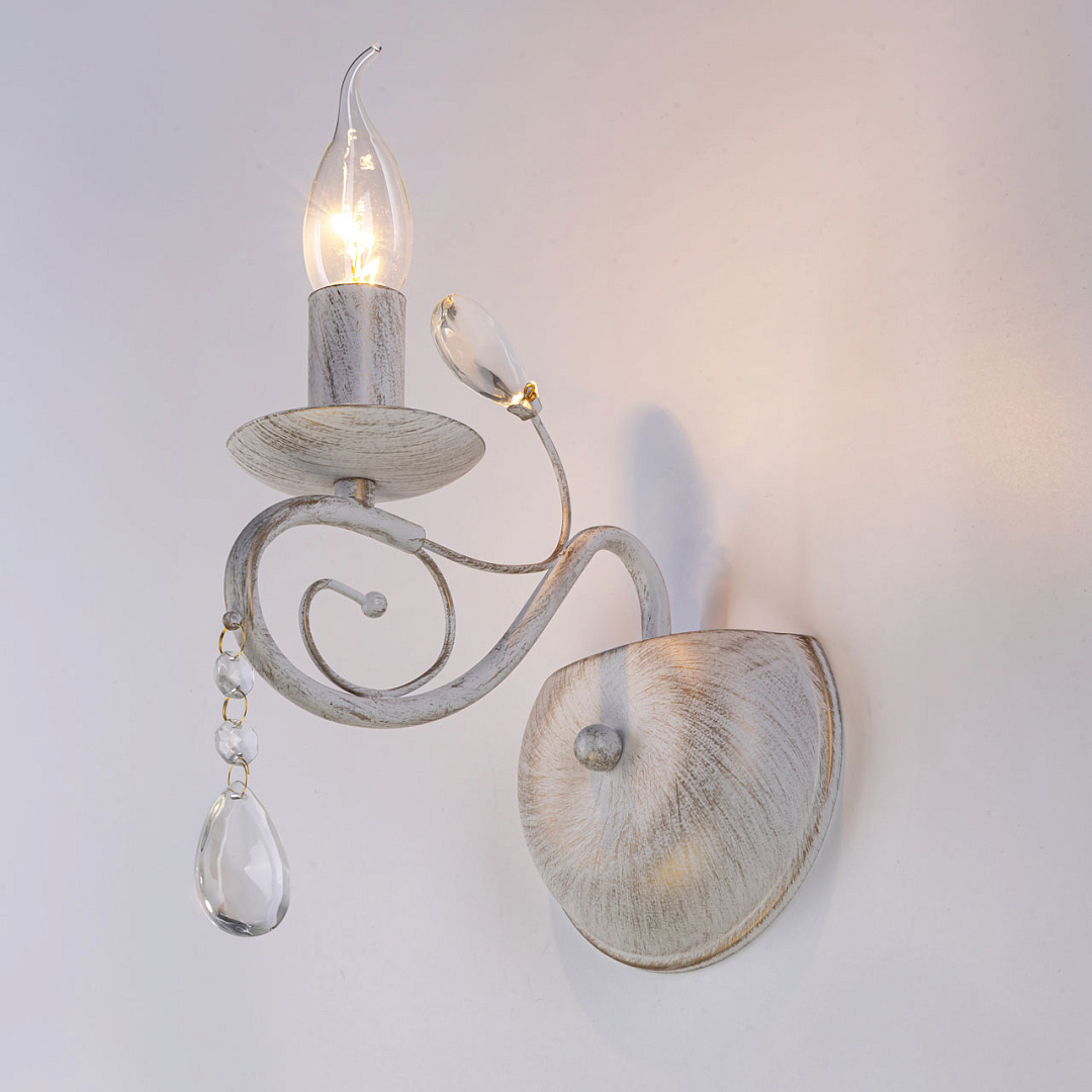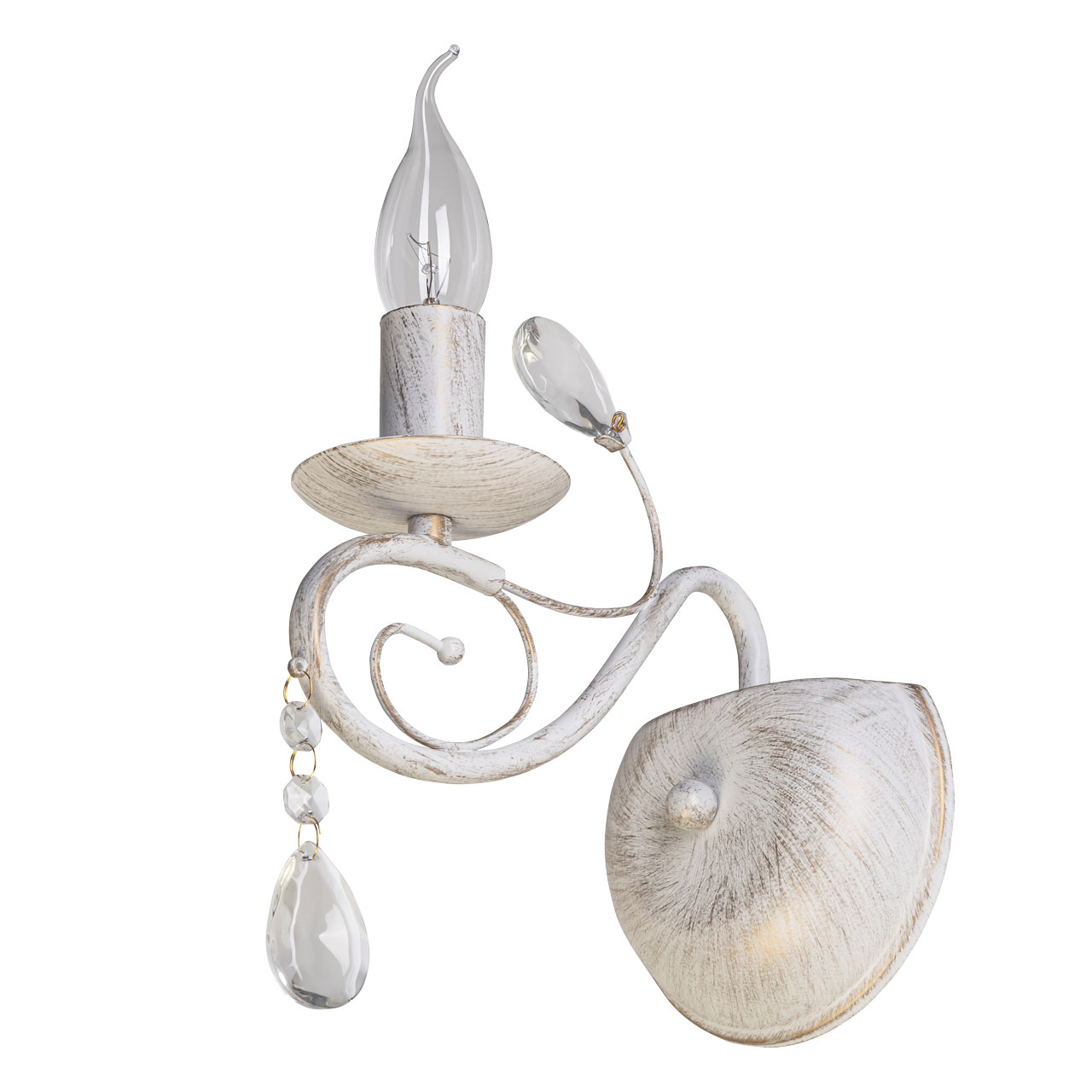 Классический дизайн настенного бра остается актуальным.Белый цвет основания с золотой патиной позволяет декорировать любой интерьер.Открытый источник света создает местное освещение.Заменяемая лампа удобна в эксплуатации.