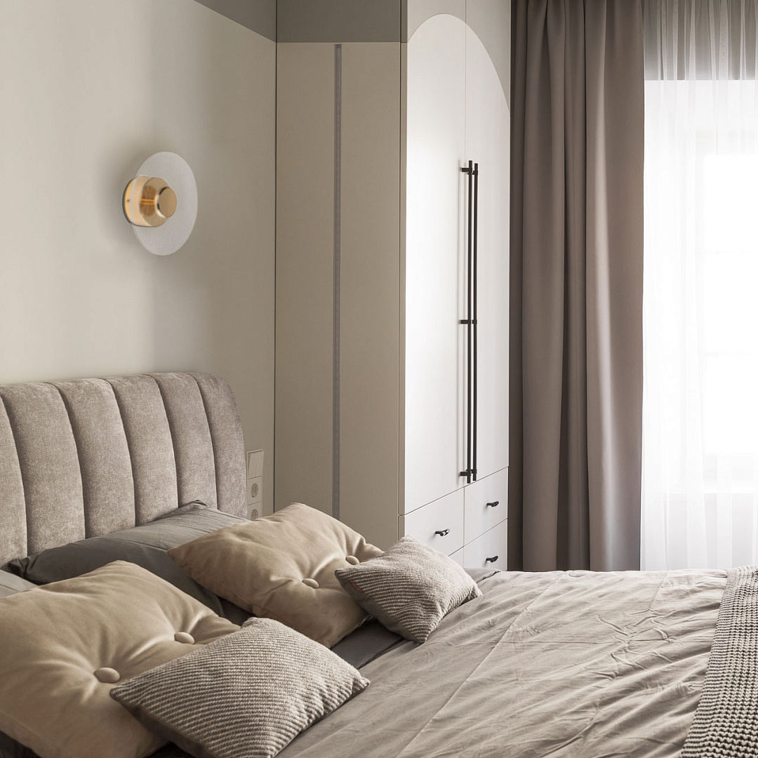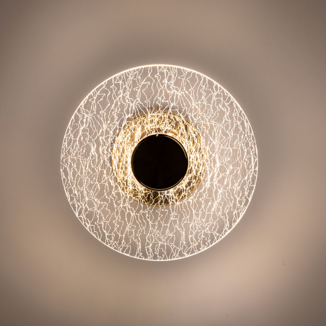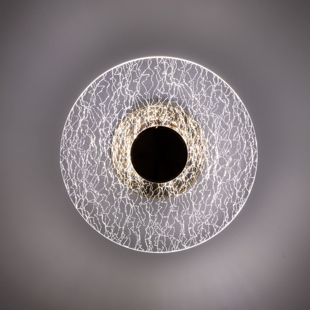 Современное настенное бра в золотом цвете универсально подойдет в классический и современный интерьеры. Эффектный плафон из прозрачного акрила с имитацией льдистого стекла плавно рассеивает свет. Многорежимность с изменением цветовой температуры от 3000К до 6500К является элементом светодизайна и позволяет подобрать комфортную температуру света. Качественные светодиоды и корпус из сплава алюминия  обеспечивают яркое освещение и долгий срок службы. Светодиодные источники света экономичны и безопасны.