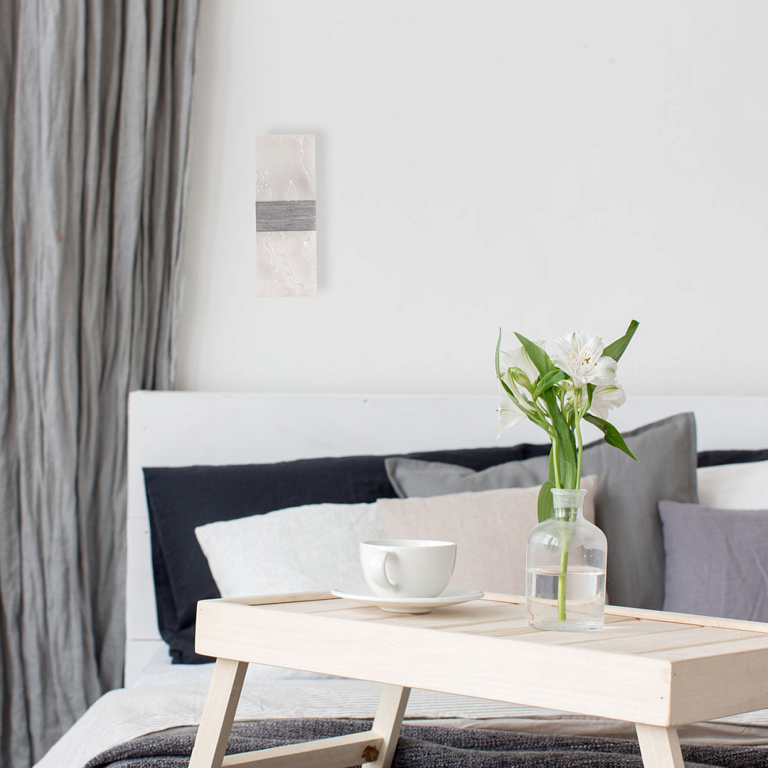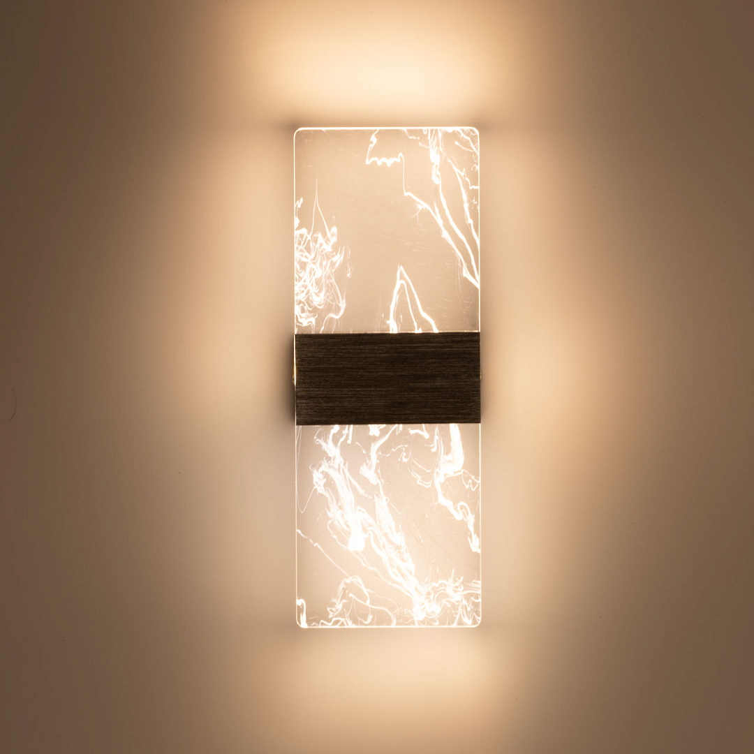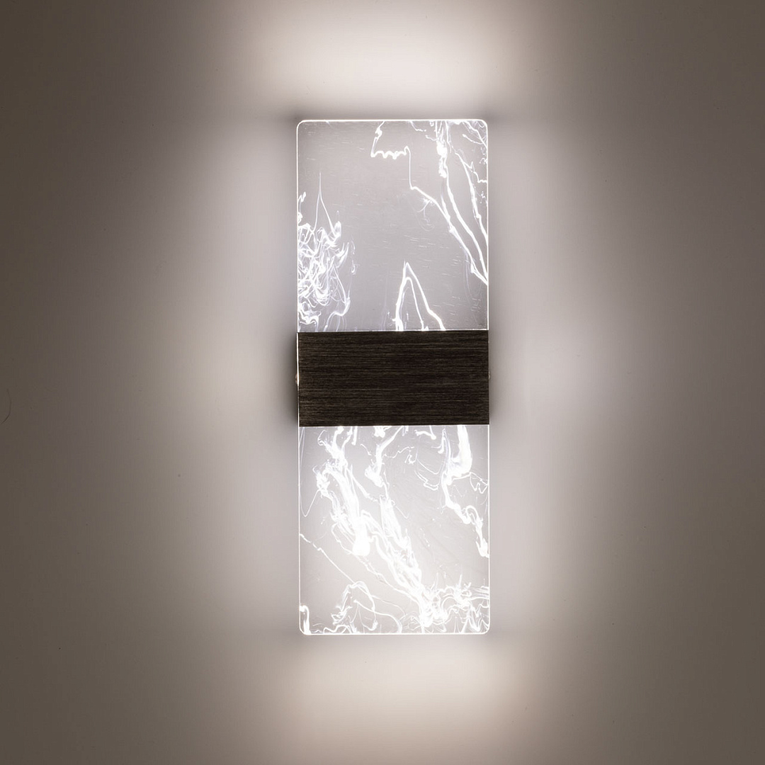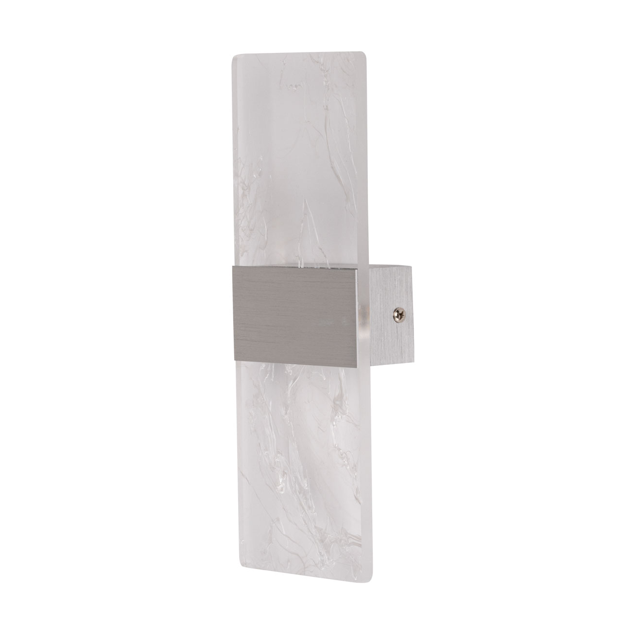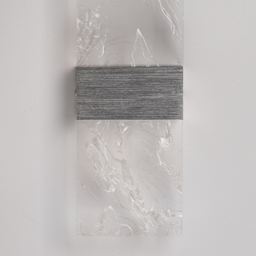 Серебряный цвет основания гармонично смотрится в интерьере, а технологичные штрихи на основе плафона создают дополнительный декоративный эффект. Полупрозрачный  акрил с оригинальным декором мягко рассеивает свет, внося в интерьер комфорт и уют. Многорежимность с изменением цветовой температуры от 3000К до 6500К является элементом светодизайна и позволяет подобрать комфортную температуру света. Качественные светодиоды и корпус из сплава алюминия  обеспечивают яркое освещение и долгий срок службы. Таким образом, настенное бра сочетает в себе элегантность и функциональность. Светодиодные источники света экономичны и безопасны.