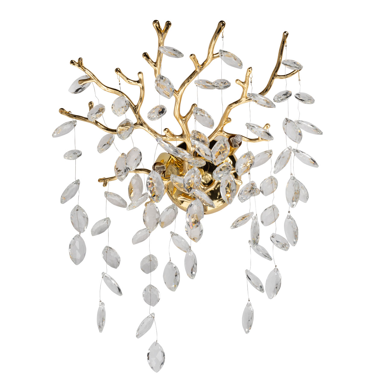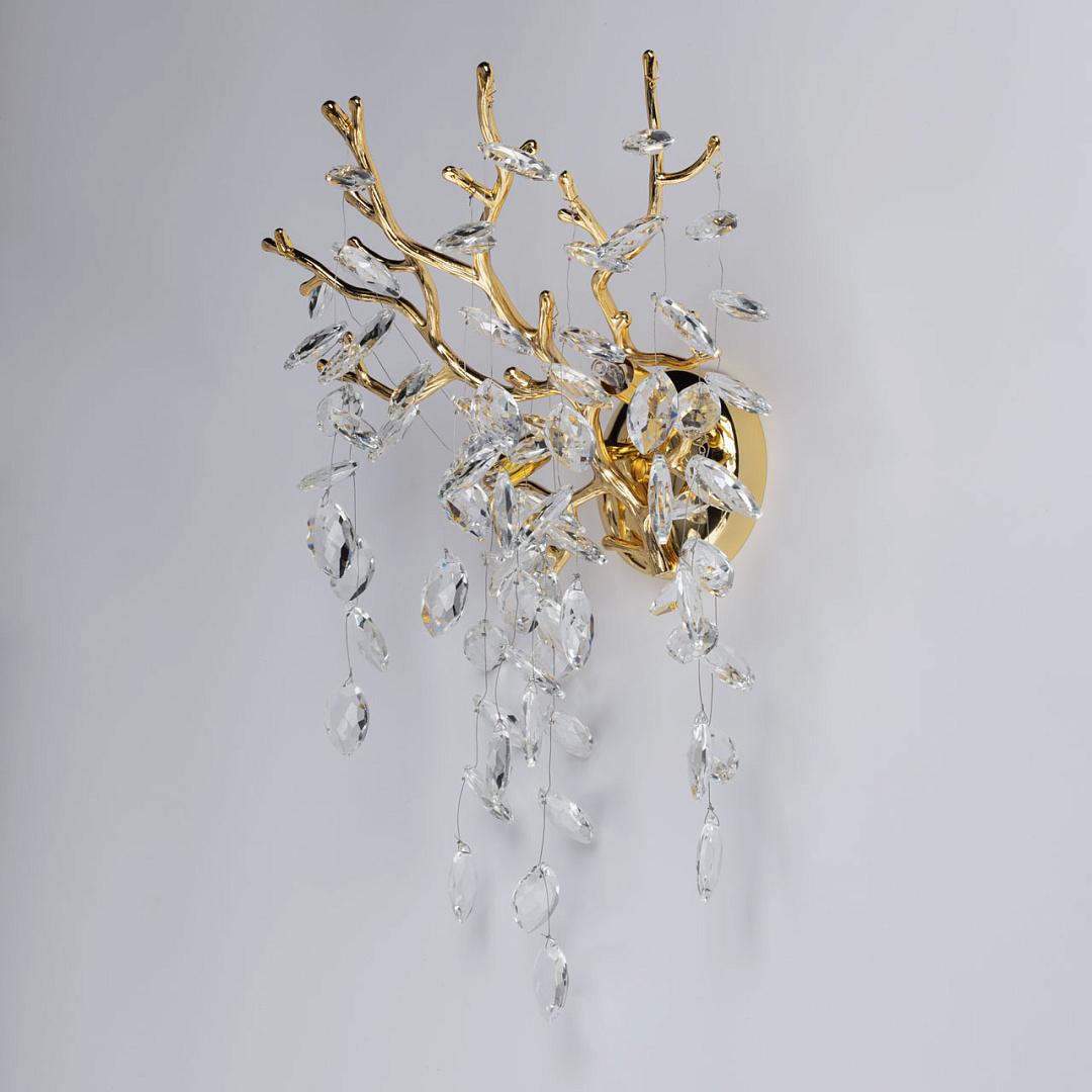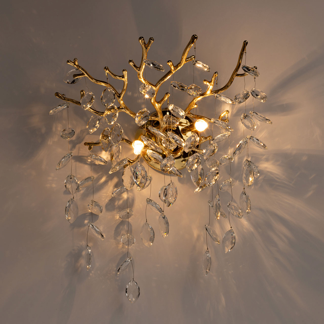 Современный дизайн с природными мотивами. Трендовая флористика, природа в доме. Декор из прозрачного хрусталя в форме око придает светильнику индивидуальность. Заменяемые источники света удобны в эксплуатации.