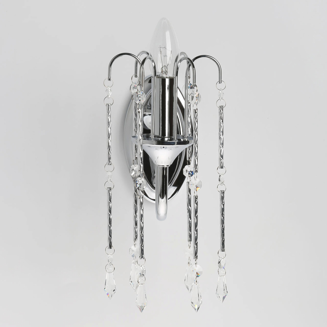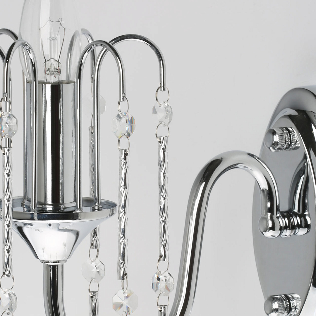 Оригинальный дизайн настенного бра придаст интерьеру легкости и воздушности.Хрусталь высокого качества и лазерная насечка на декоративных элементах создают красивую игру света.Заменяемые лампы удобны в эксплуатации.