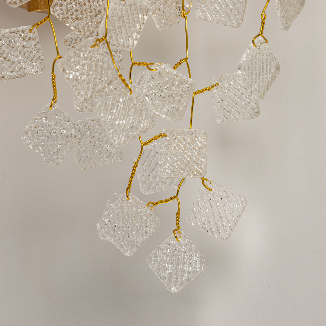 Современный дизайн с природными мотивами. Трендовая флористика, природа в доме. Декор в виде гроздьев из фактурного стекла придает светильнику индивидуальность. Заменяемые источники света удобны в эксплуатации. Возможность регулировки высоты светильника позволяет создать комфортные условия освещения.