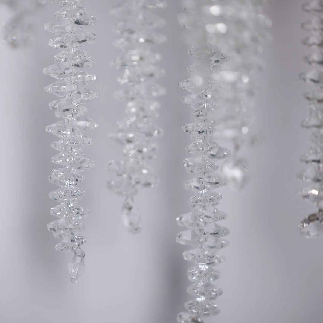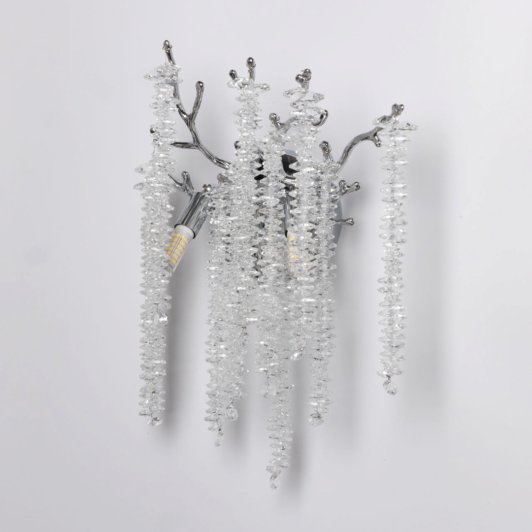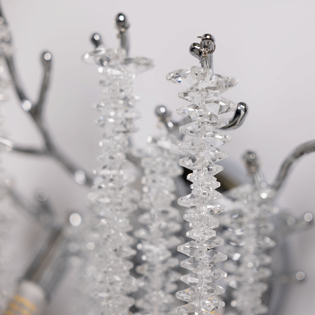 Современный дизайн с природными мотивами. Трендовая флористика, природа в доме. Декор в виде  гроздьев из прозрачного хрусталя придает светильнику индивидуальность и создает эффектную игру света. Заменяемые источники света удобны в эксплуатации. Возможность регулировать комфортную высоту.