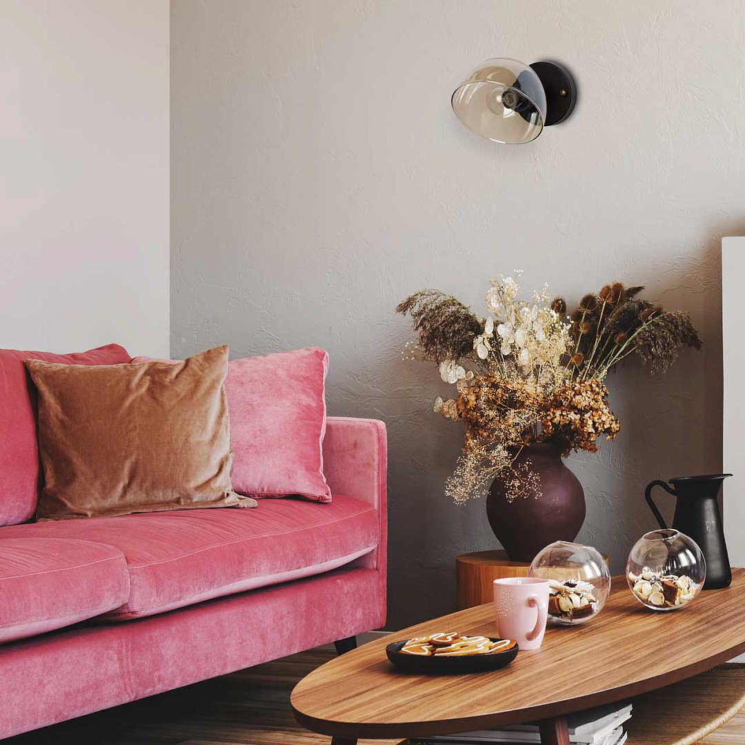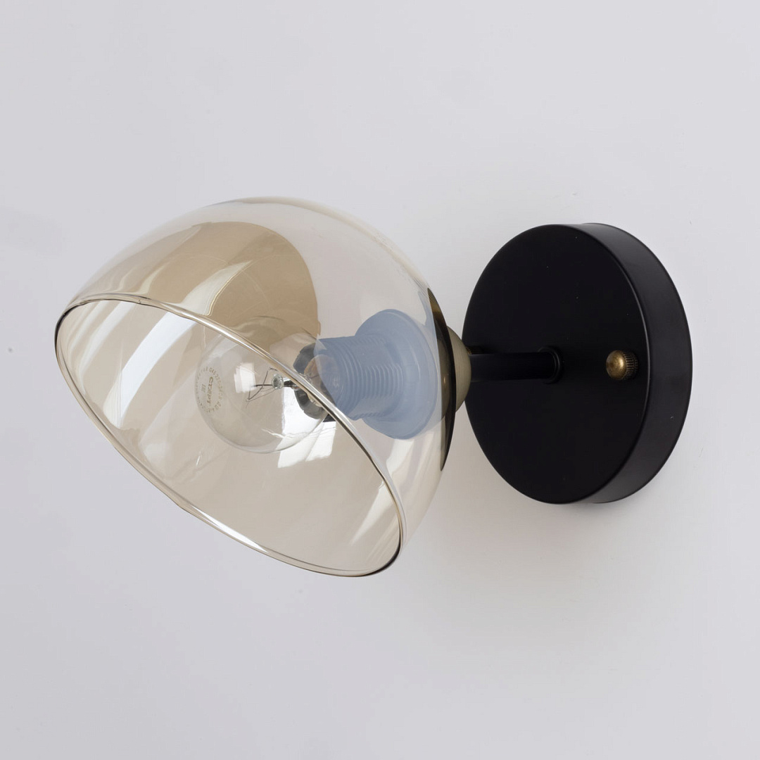 Контрастное сочетание глубокого черного цвета и цвета бронзы добавляют настенному бра элегантности и стиля. Минималистичные формы придают современность дизайну. Стеклянный плафон цвета шампань создает приятное освещение. Заменяемый источник света удобен в эксплуатации.