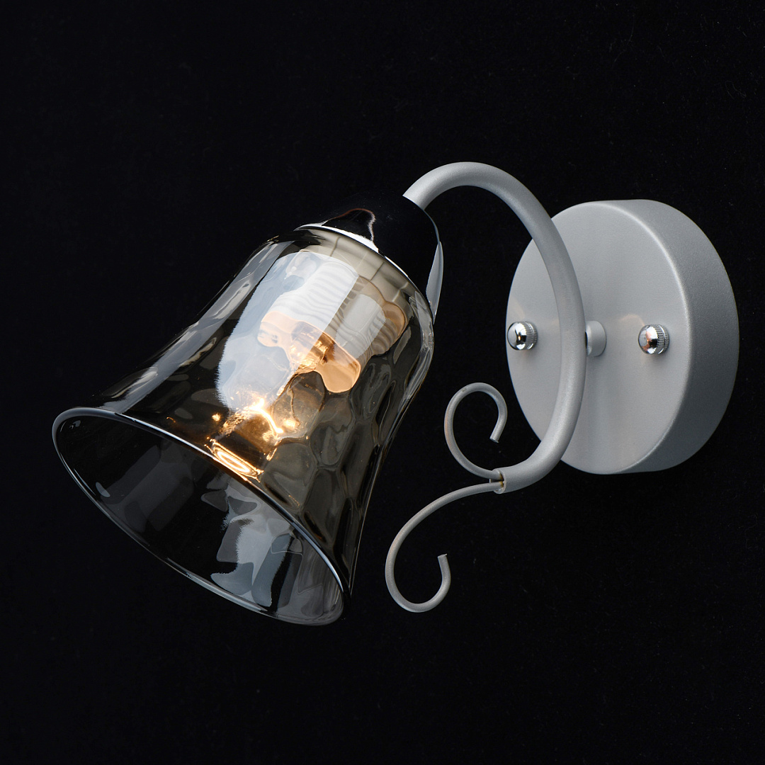 Новый оттенок серебра в сочетании с глянцевым хромом актуален в современных интерьерах.Стекло плафона в дымчатом цвете обеспечивает комфортный световой поток.Рельефный плафон создает игру света.Полная семья из бра, потолочных светильников из 5 и 8 ламп.