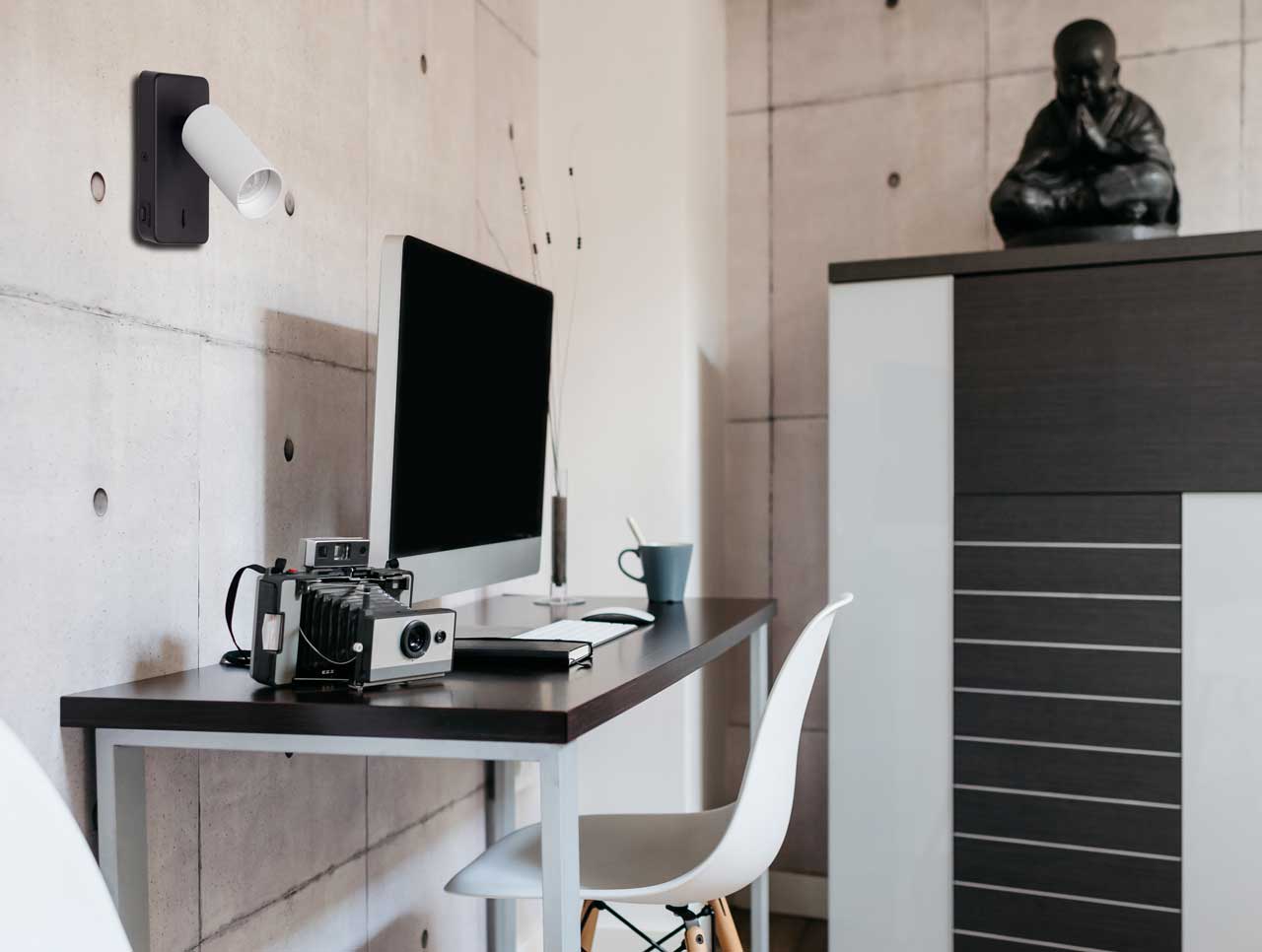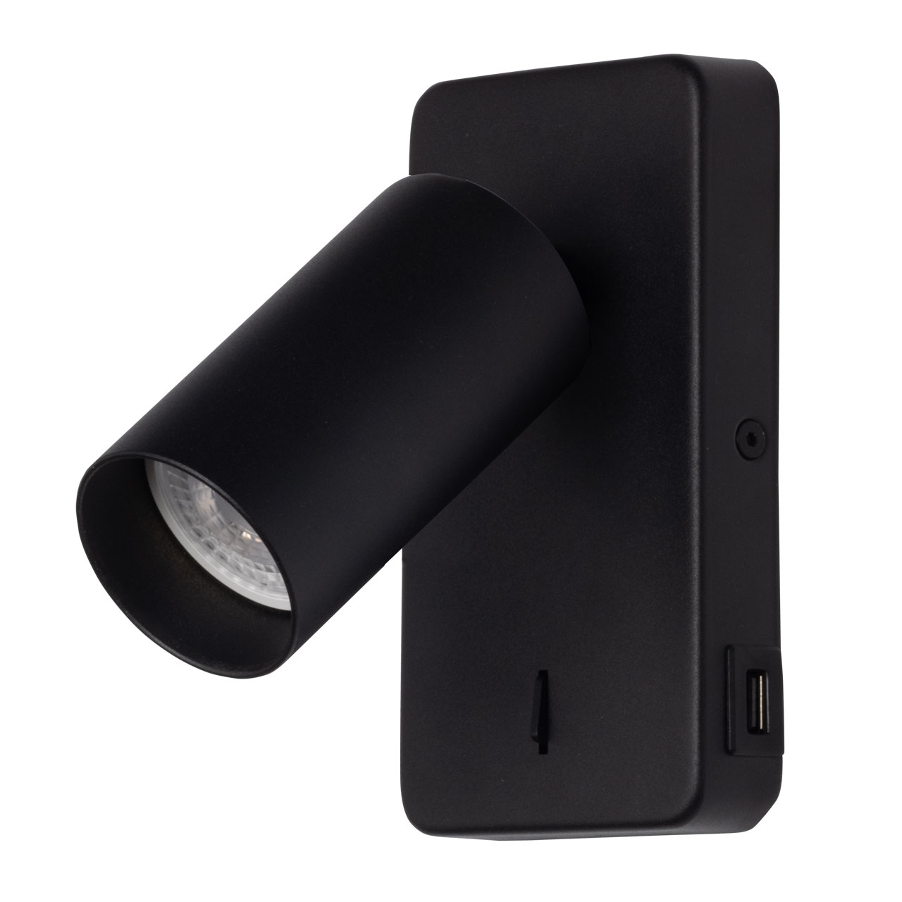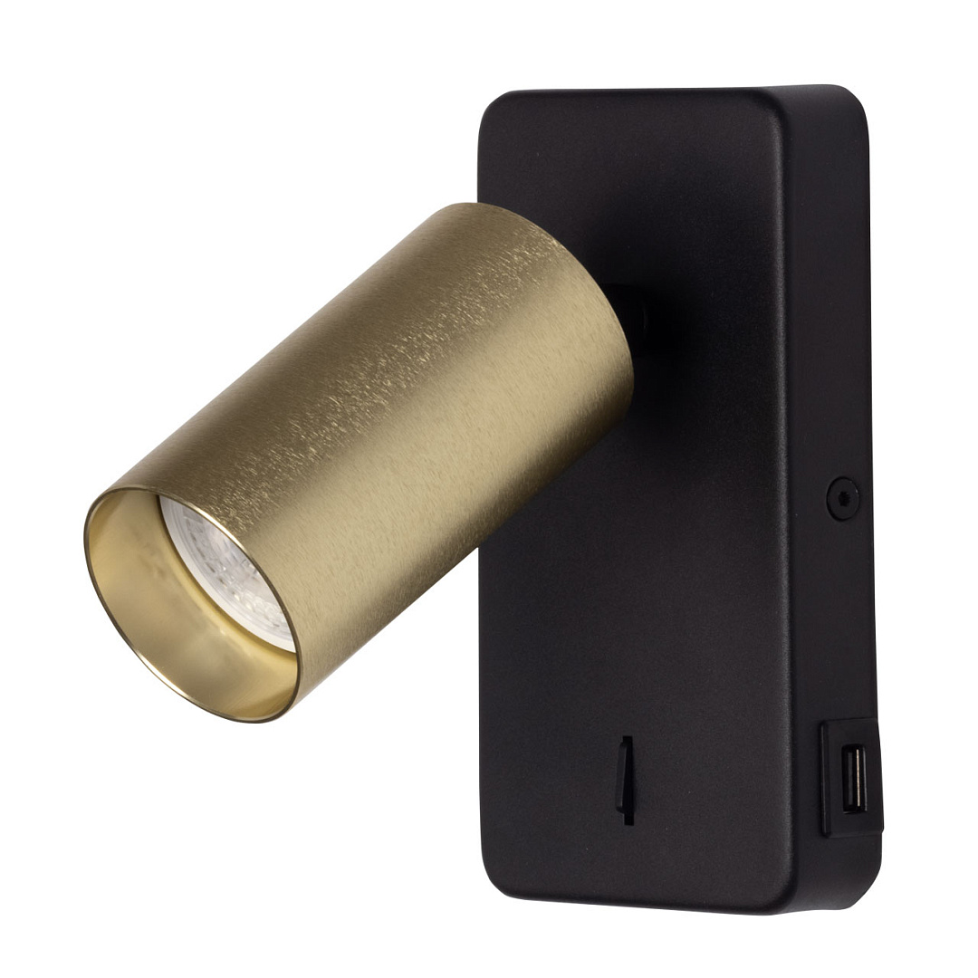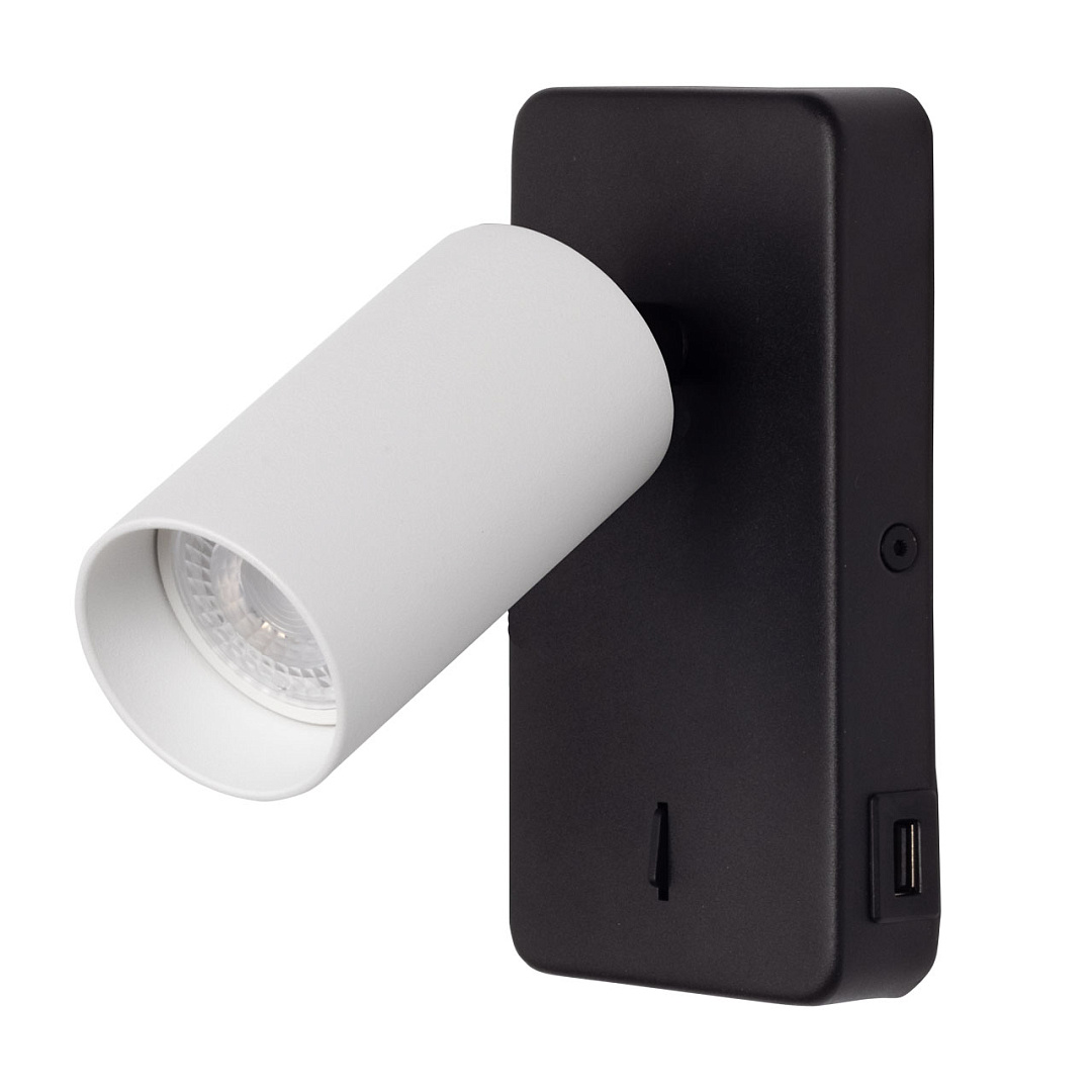 Минималистичный современный дизайн. Контрастный черный цвет делает светильник акцентом в интерьере. Возможность регулировать направление светового потока обеспечивает акцентное освещение. Наличие USB-порта и индивидуального выключателя комфортно в использовании. Плафон подбирается дополнительно и позволяет комбинировать цвета белый, черный и золотой.  Заменяемый источник света удобен в эксплуатации.