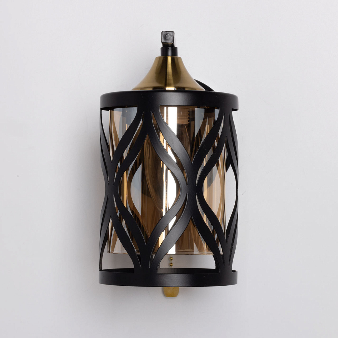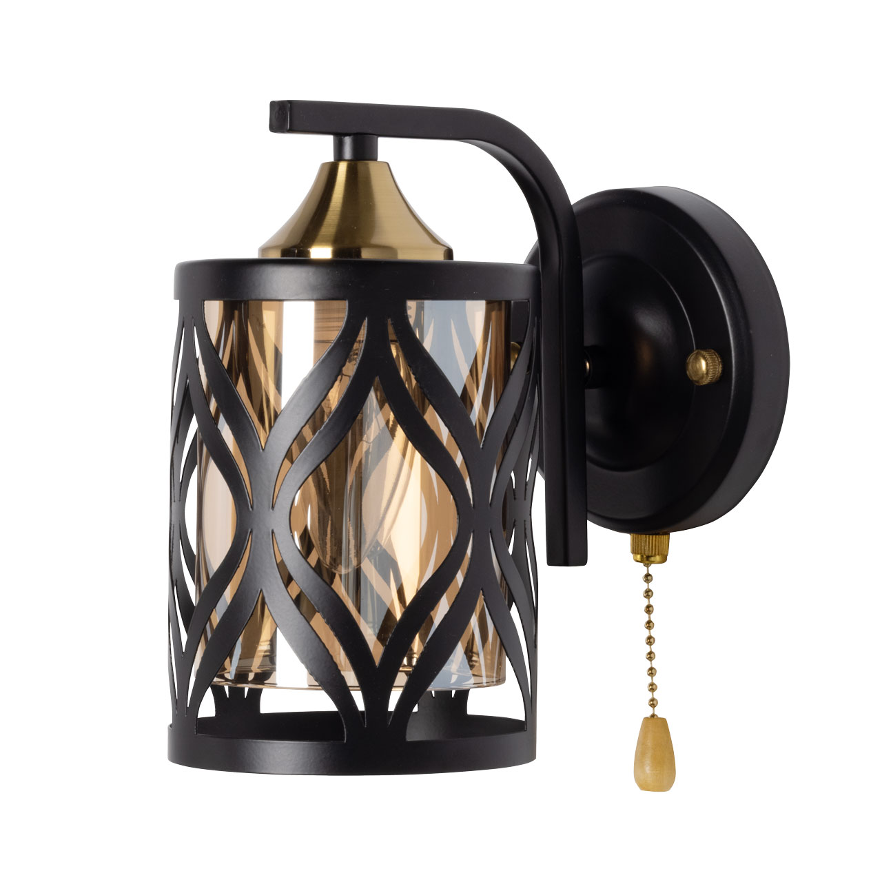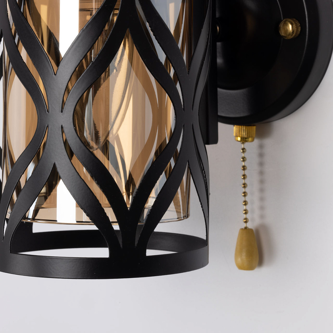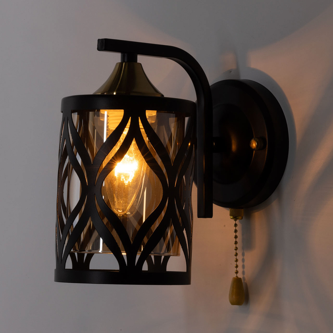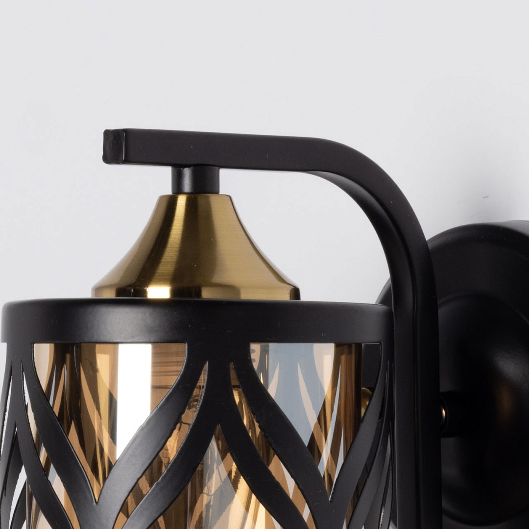 Сочетание на контрасте матового черного цвета и глянцевого цвета античной бронзы эффектно выделяет настенное бра. Черный цвет металлического плафона актуален в стиле лофт и в брутальном интерьере. Стеклянный плафон цвета шампань мягко преломляет свет. Заменяемый источник света удобен в эксплуатации.
