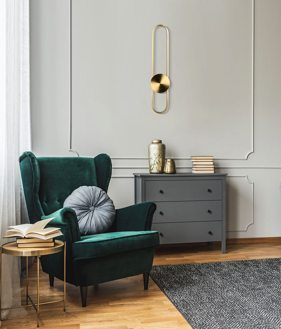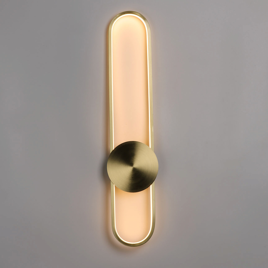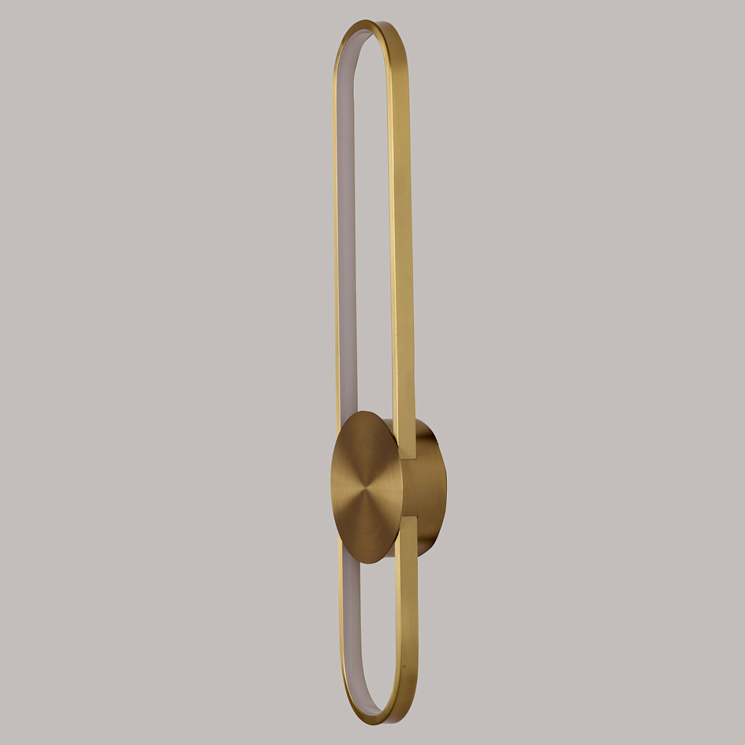 Трендовый дизайн настенного бра придает ему современности  и актуальности. Цвет латуни гармонично смотрится в интерьере. Матовый силикон создает комфортный рассеянный свет. Светодиодные источники света экономичны и безопасны.