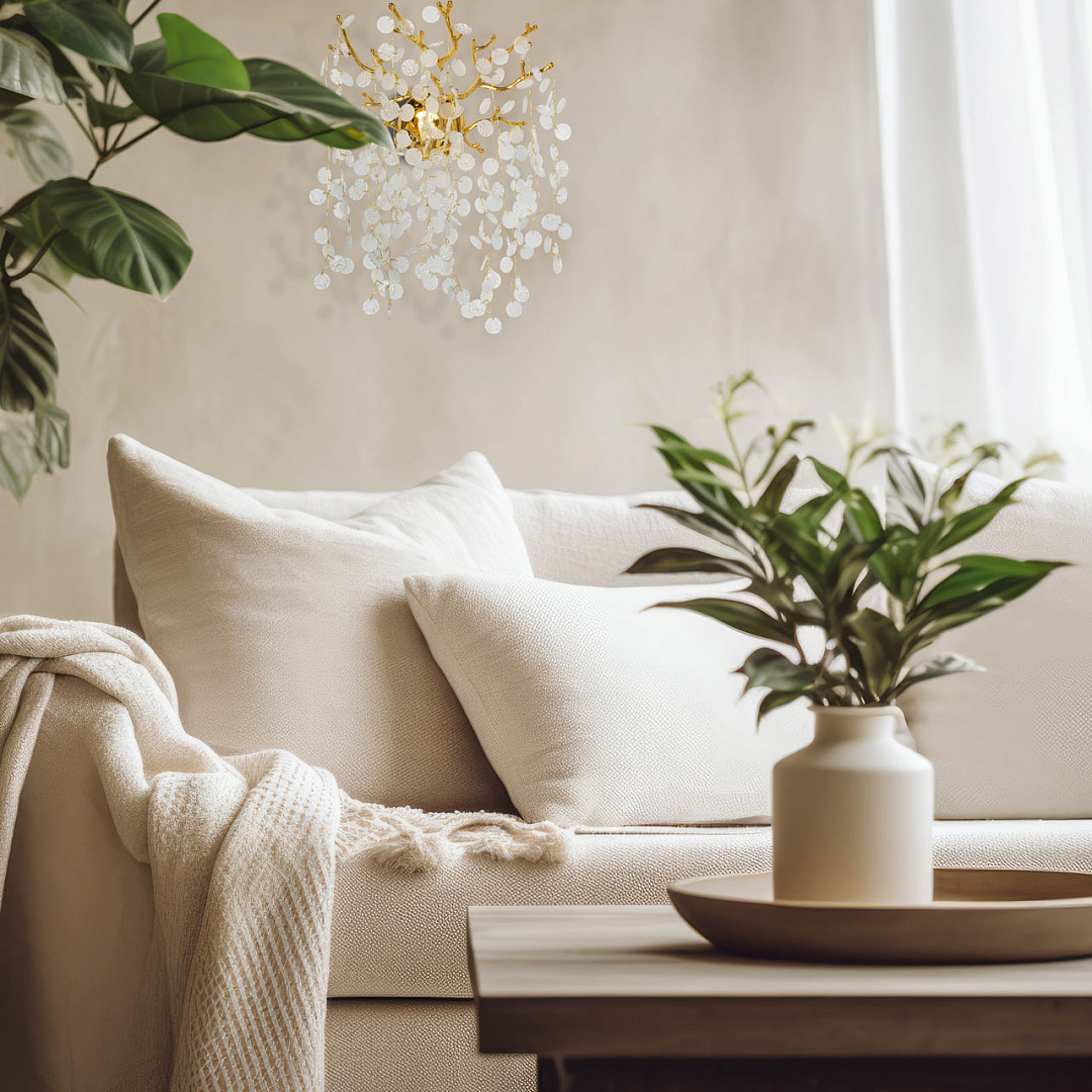 Современный дизайн с природными мотивами. Трендовая флористика, природа в доме. Декор в виде гроздьев из фактурного стекла придает светильнику индивидуальность. Заменяемые источники света удобны в эксплуатации.