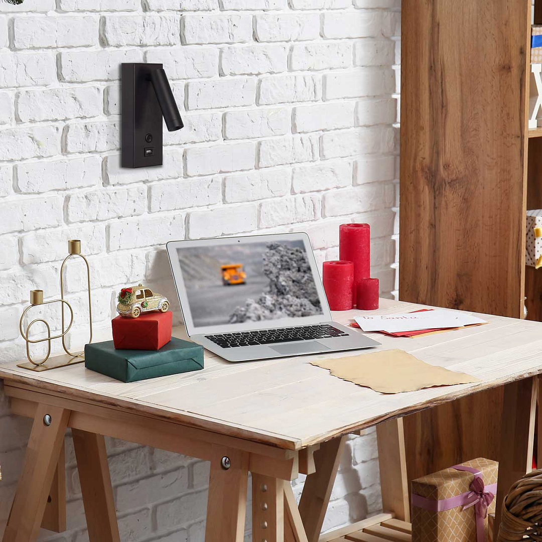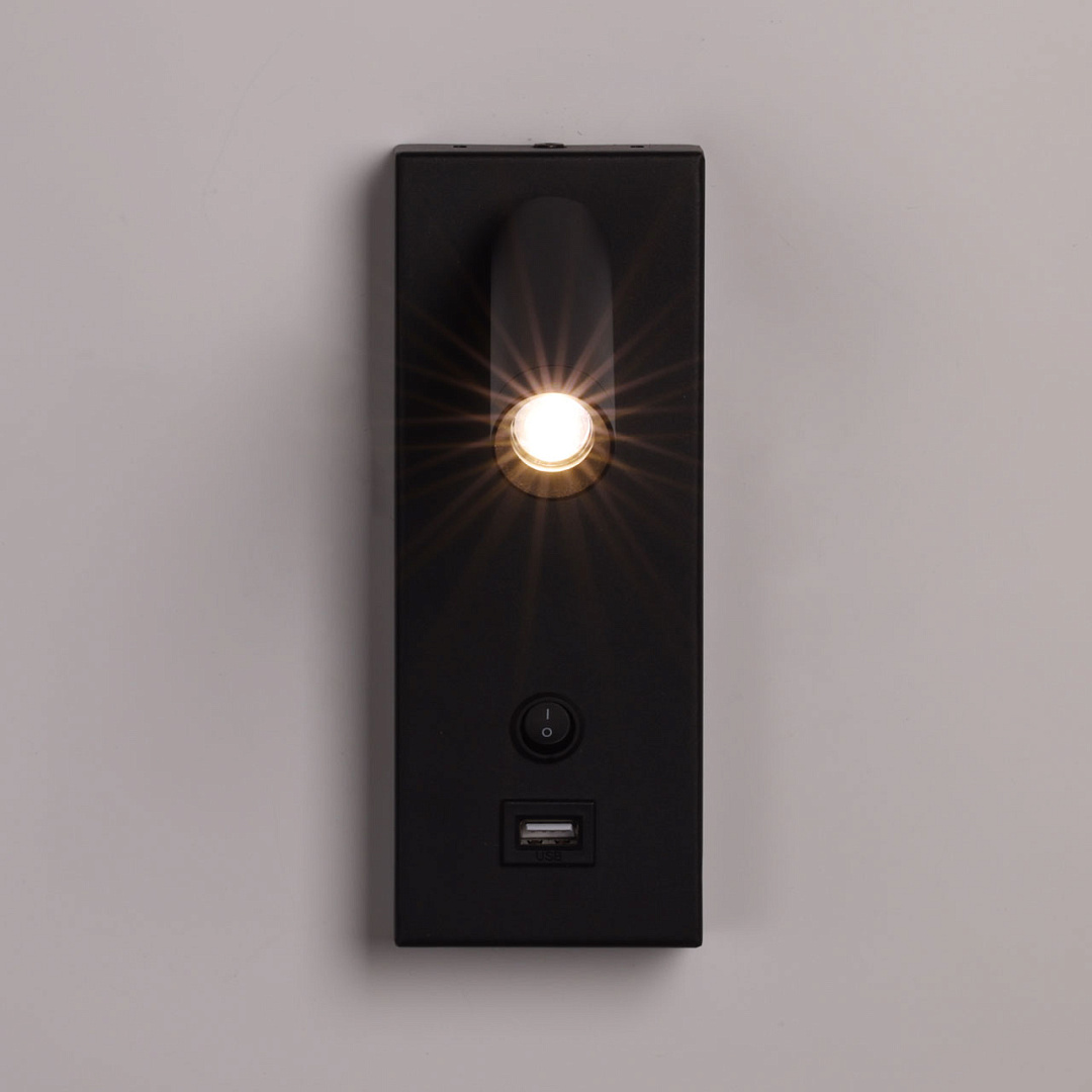 Минималистичный современный дизайн. Возможность регулировать направление света. Светильник оснащен индивидуальным выключателем и USB-портом, что делает его особенно удобным и комфортным. Светодиодный источник света экономичен и безопасен.