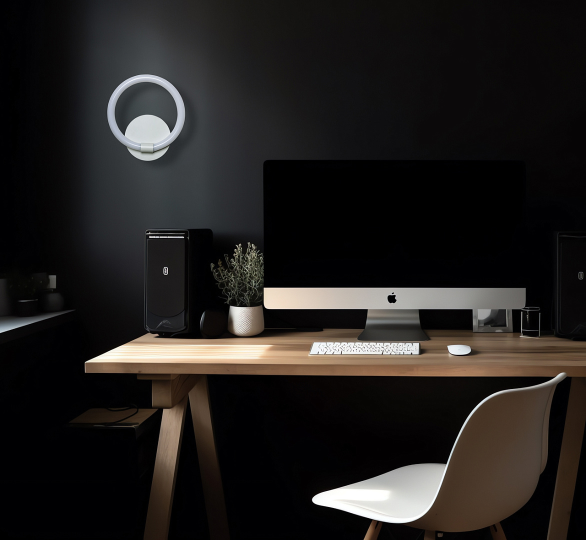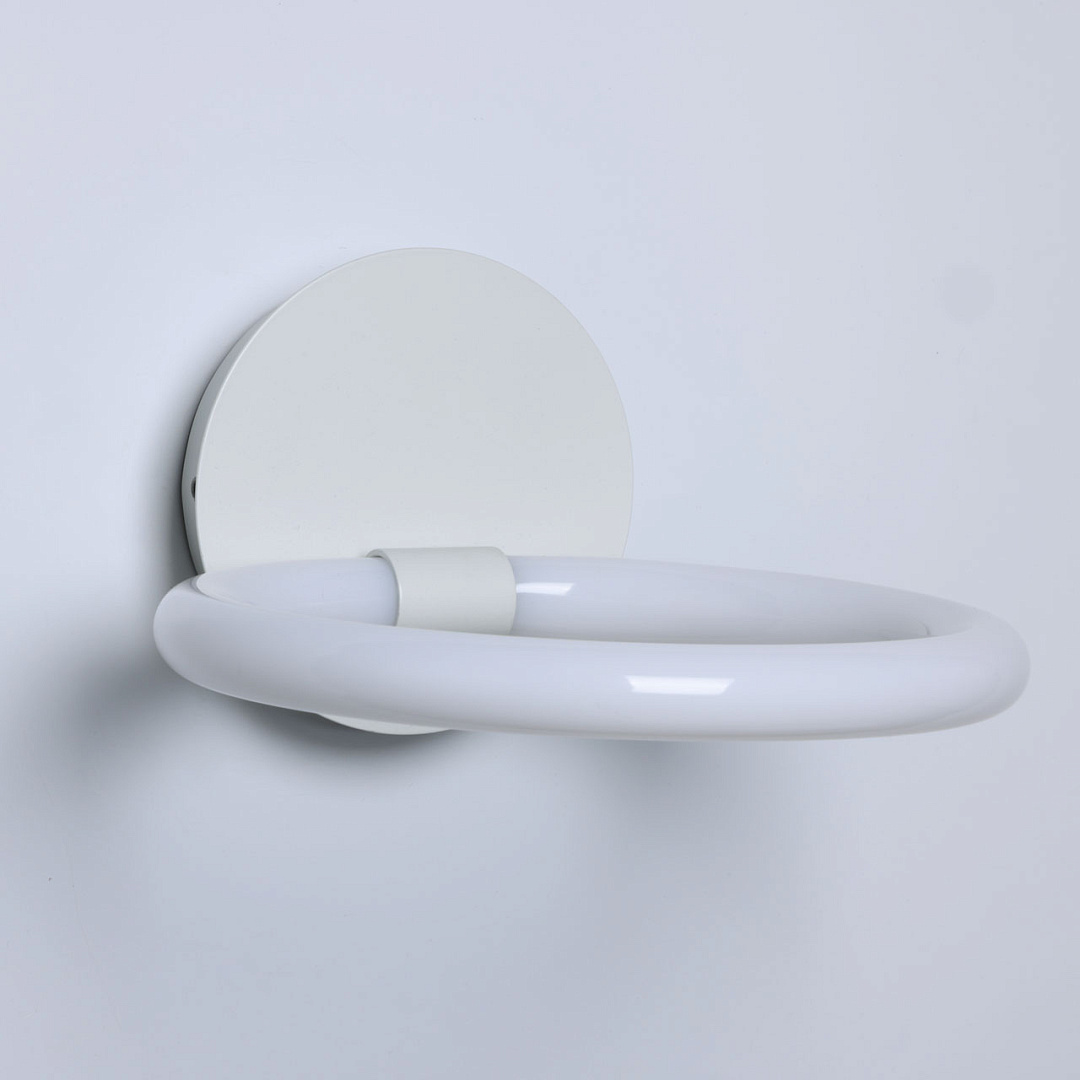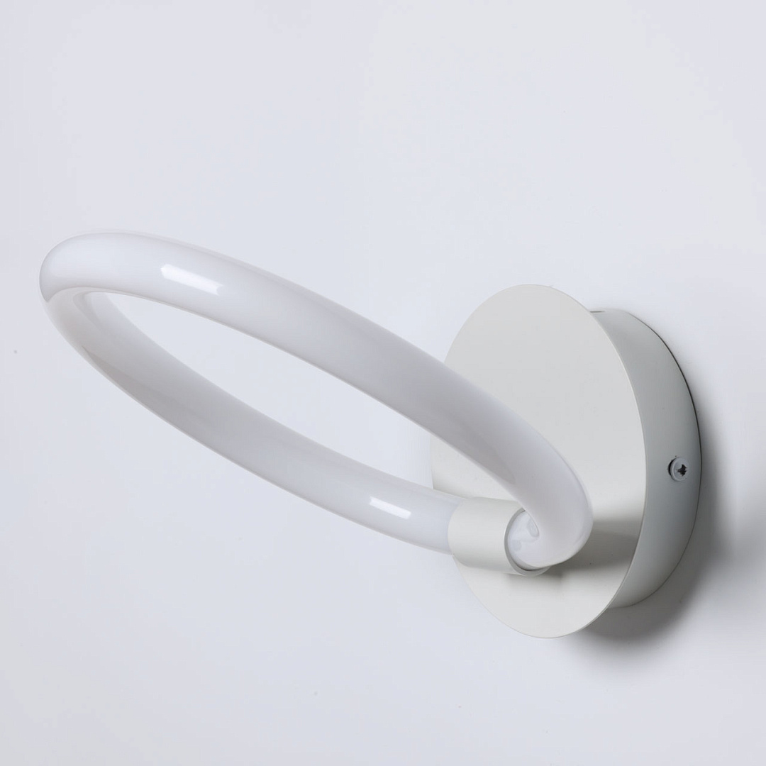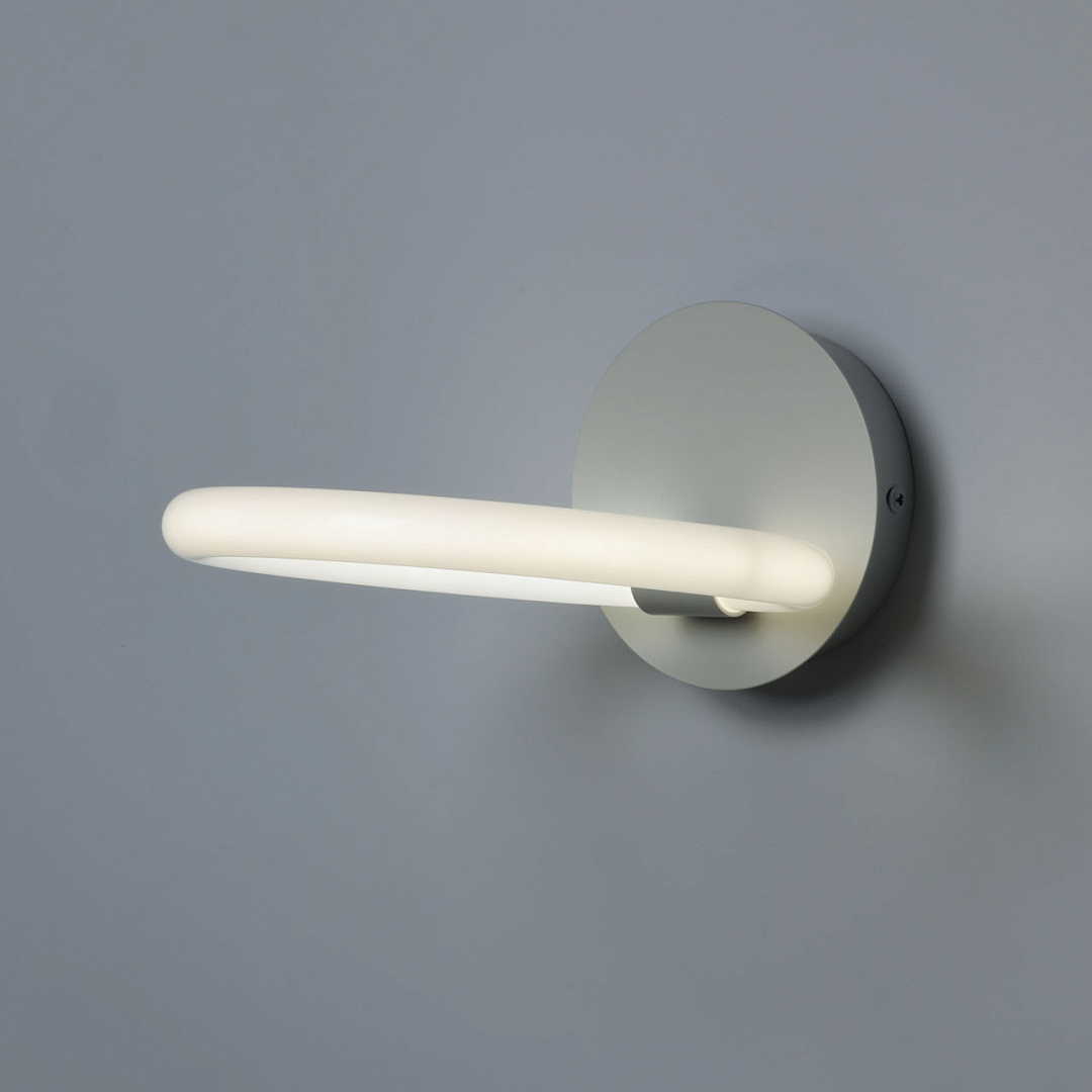 Белый цвет основания придает настенному бра легкости и воздушности. Изящно изогнутый в форме круга плафон создает единый и гармоничный образ светильника. Матовый акрил плафона создает мягкое местное освещение. Светодиодные источники света экономичны и безопасны.