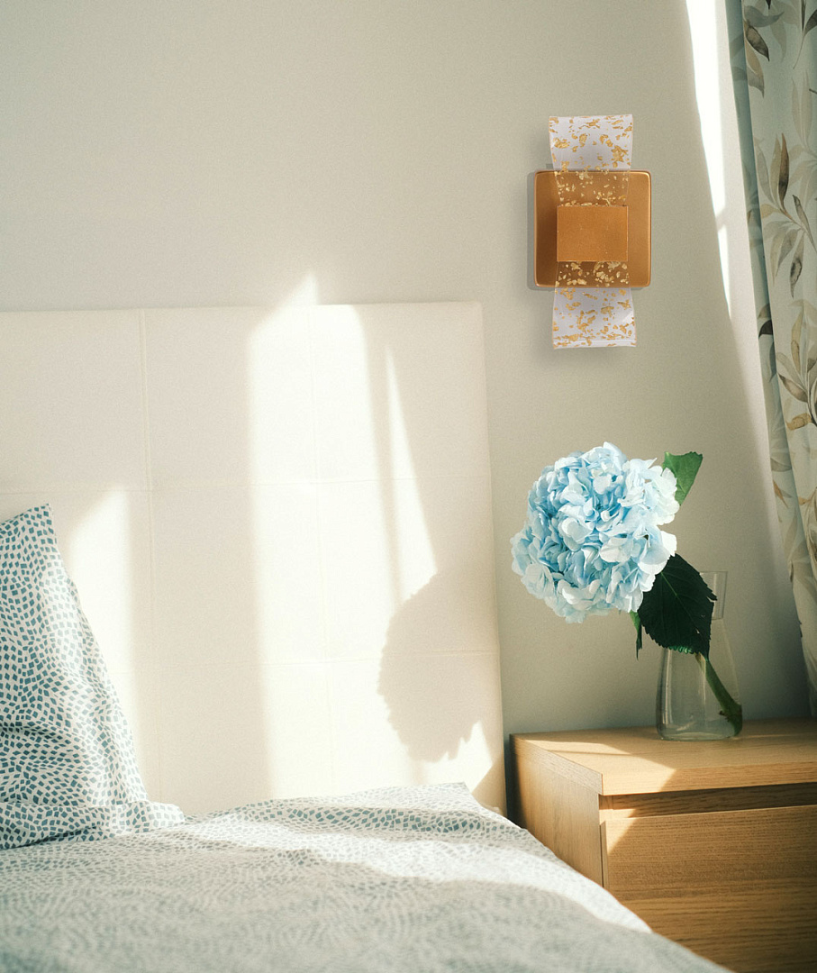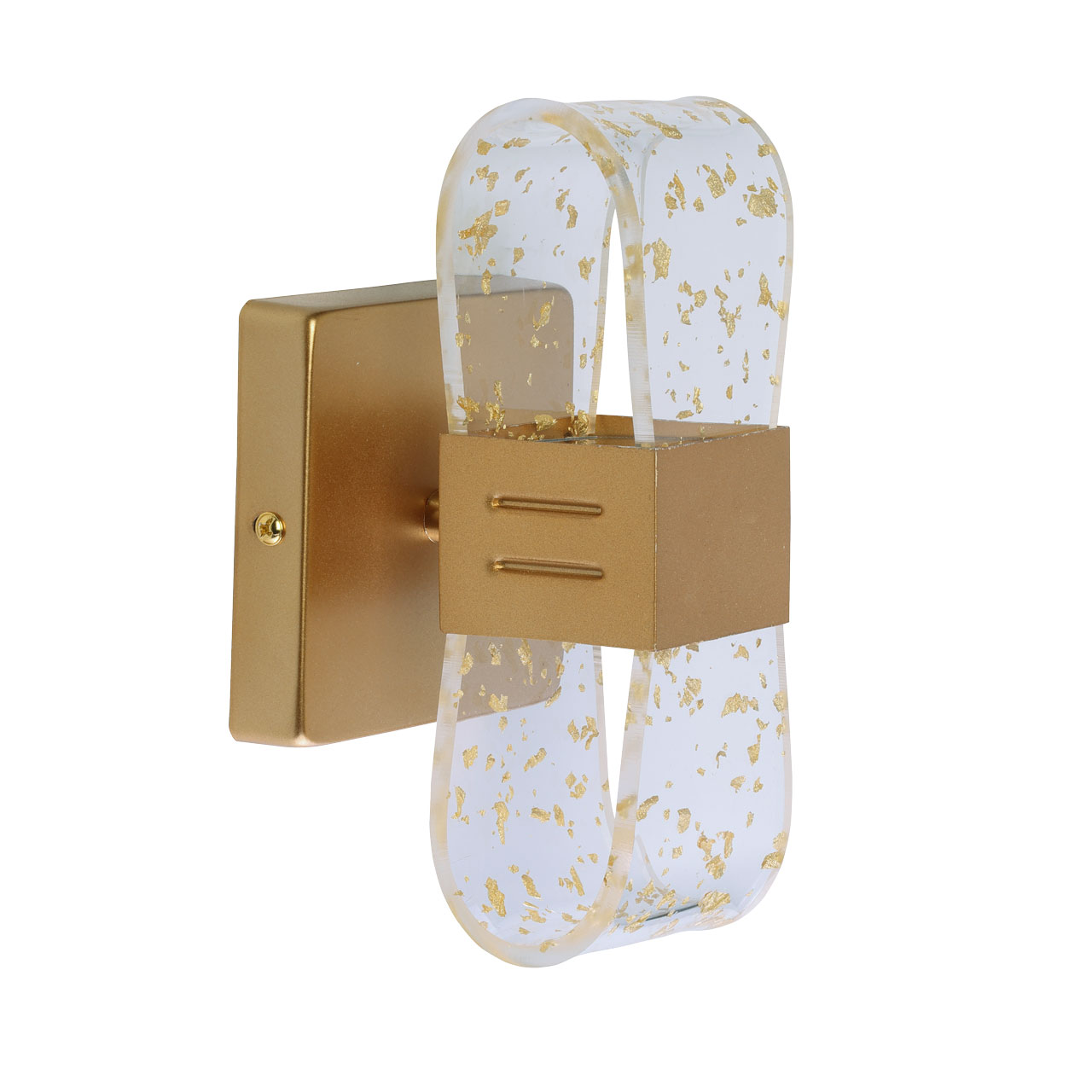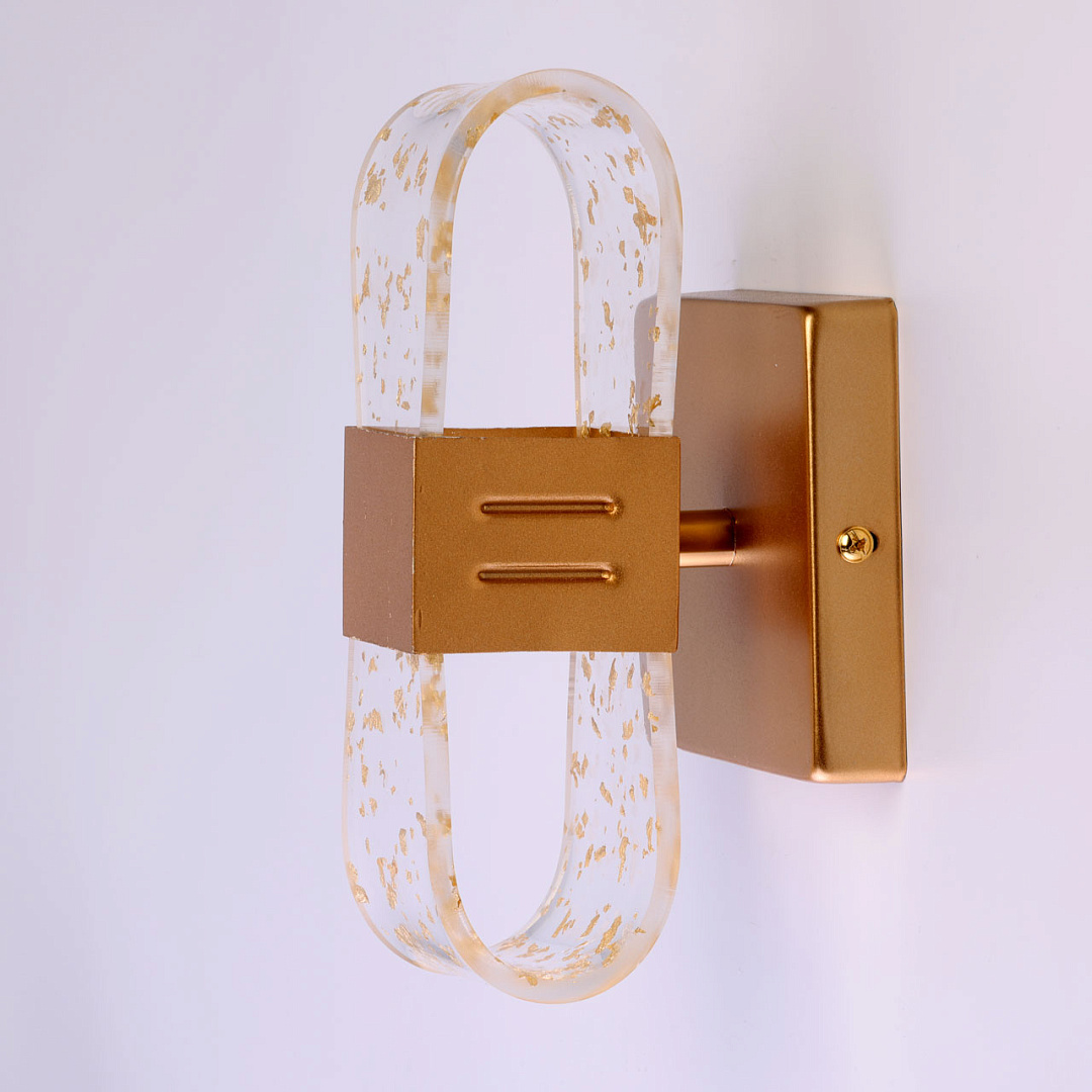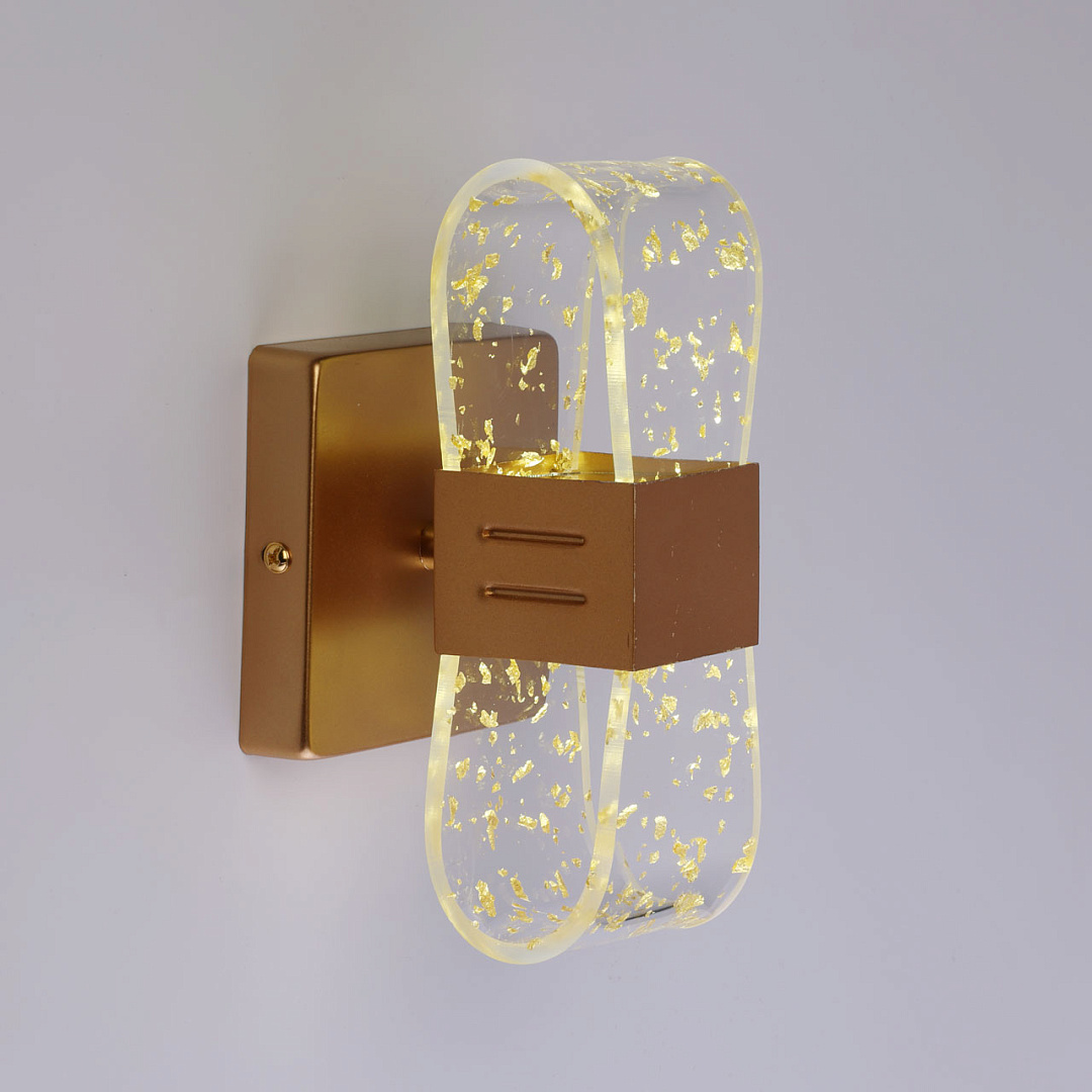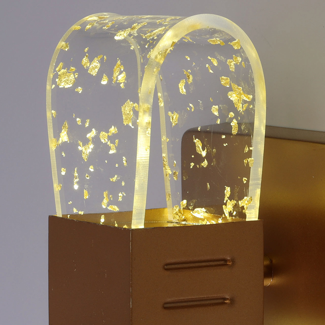 Современное настенное бра в цвете матового золота универсально подойдет в классический и современный интерьеры. Эффектный плафон из прозрачного акрила с золотыми вкраплениями  плавно рассеивает свет. Несколько режимов освещения от 3000К до 6500К позволяют создавать разные сценарии освещения. Качественные светодиоды обеспечивают яркое освещение, долгий срок службы и экономичны в эксплуатации.