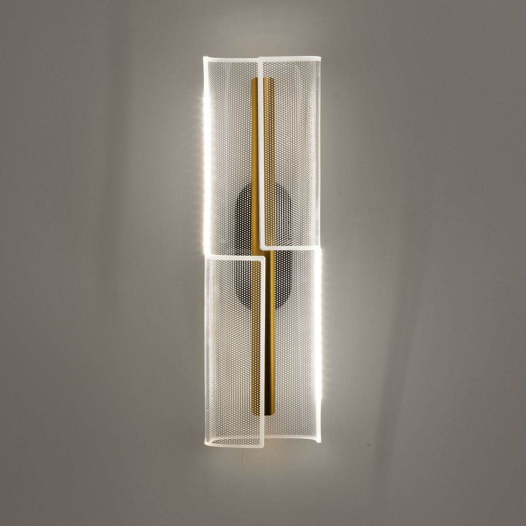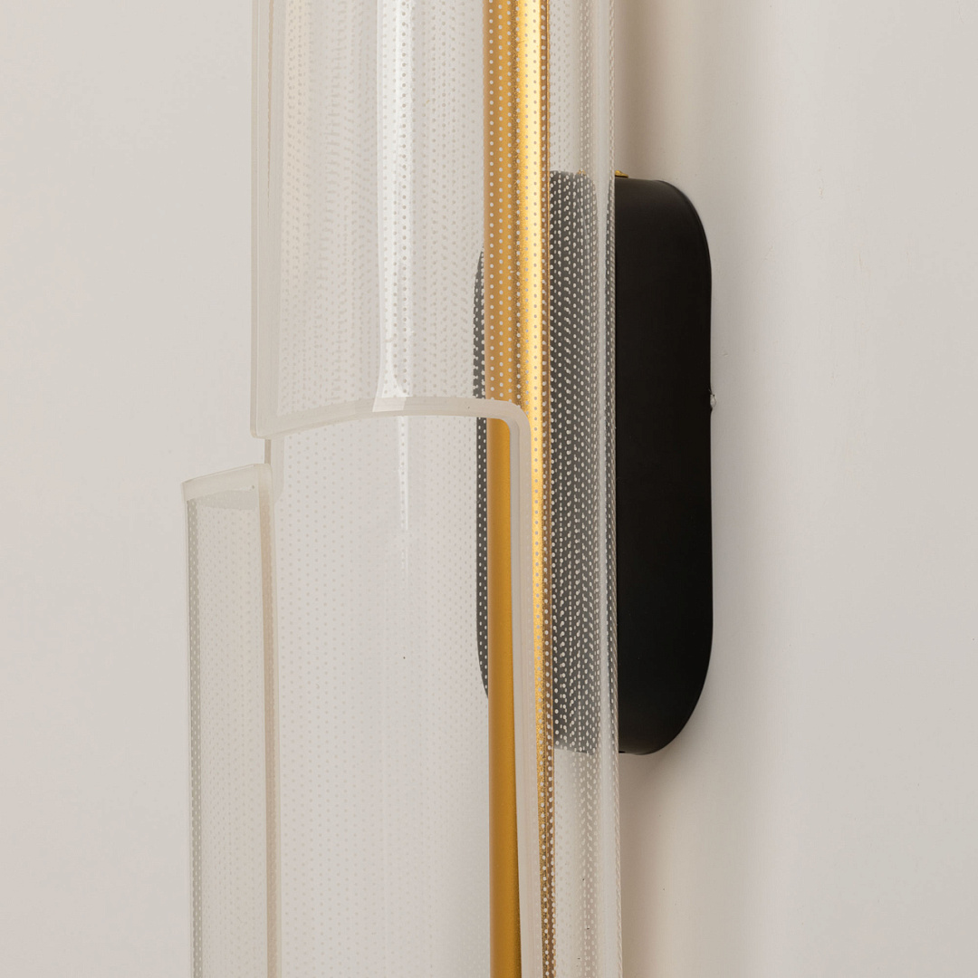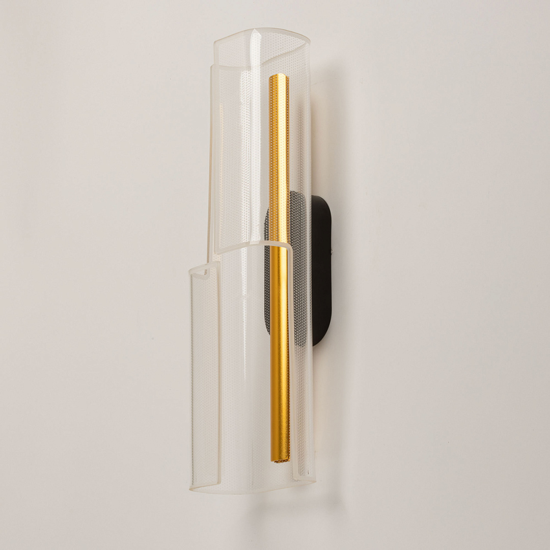 Для придания дополнительного шарма в настенном бра гармонично сочетается глубокий черный цвет и цвет золота. Эффектный плафон из прозрачного акрила с рисунком красиво преломляет свет. Многорежимность с изменением цветовой температуры от 3000К до 6000К является элементом светодизайна и позволяет подобрать комфортную температуру света с помощью настенного выключателя. Качественные светодиоды и корпус из сплава алюминия обеспечивают яркое освещение и долгий срок службы.