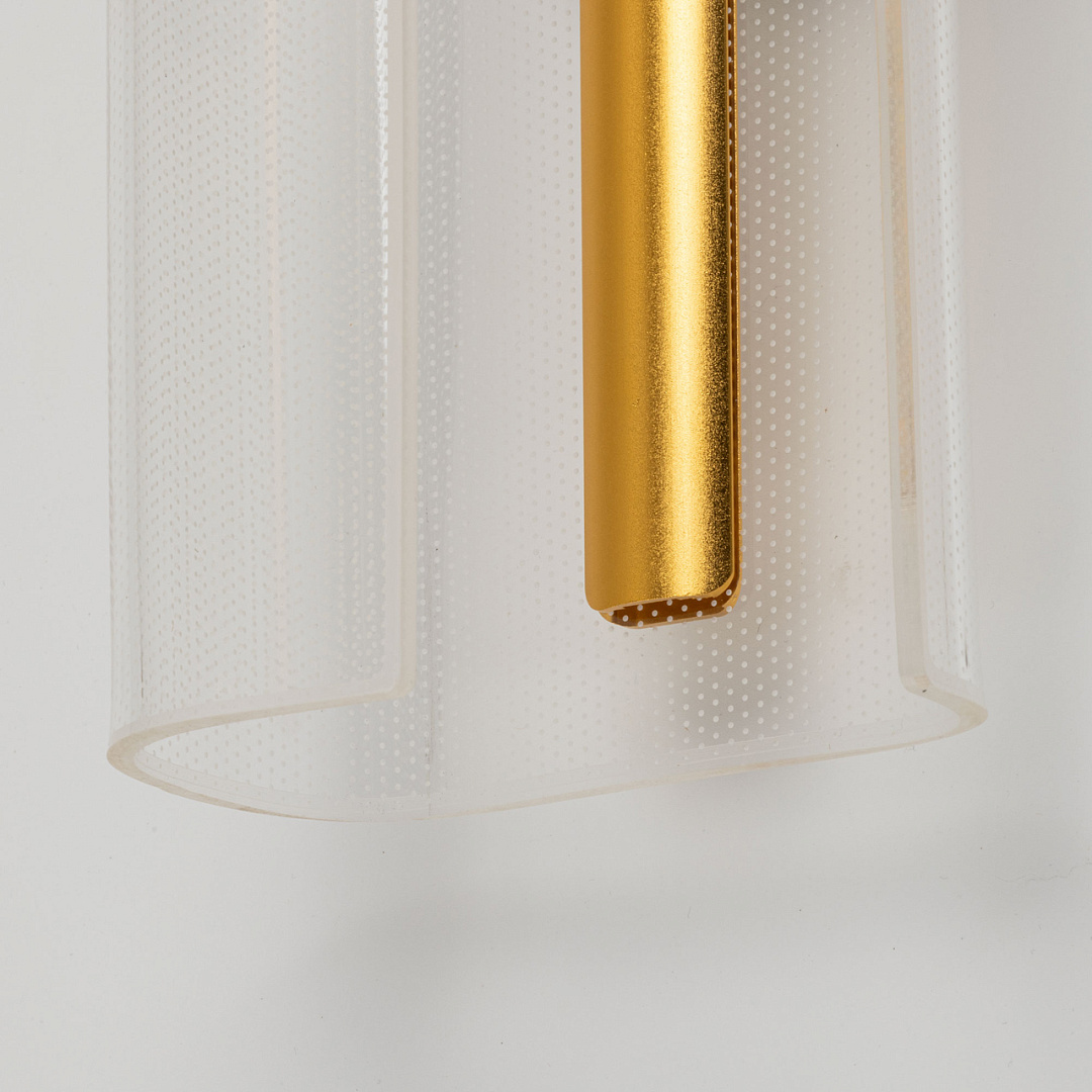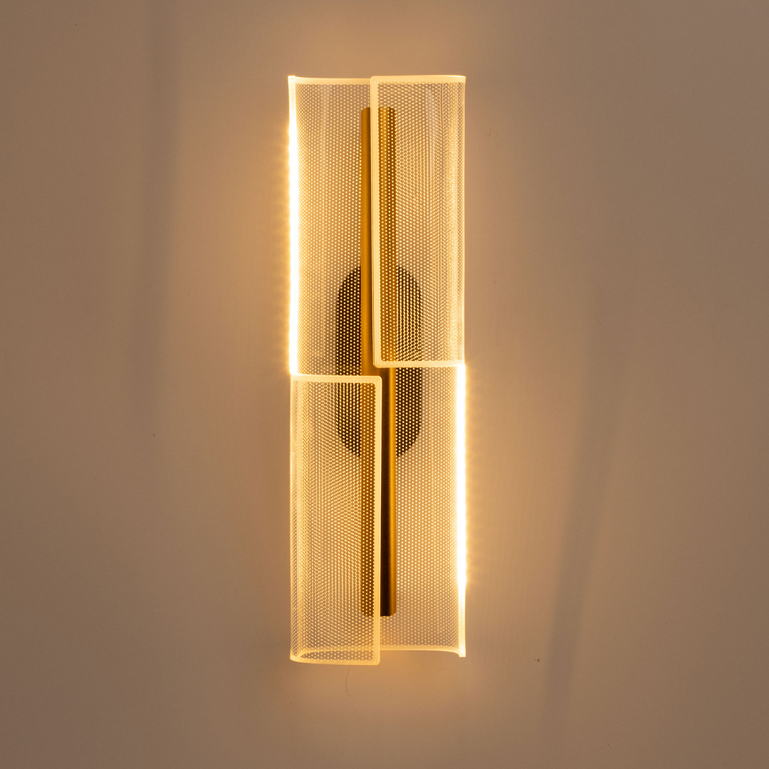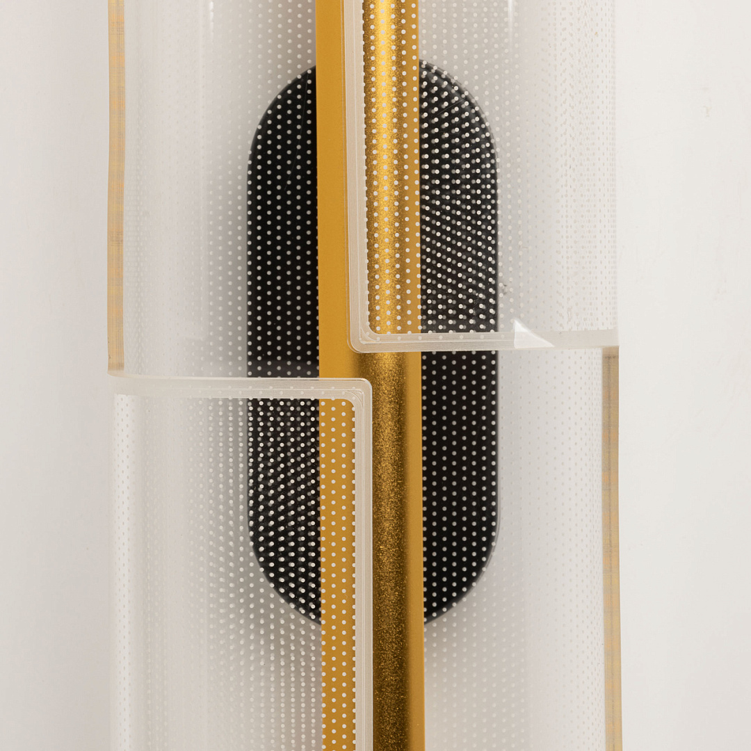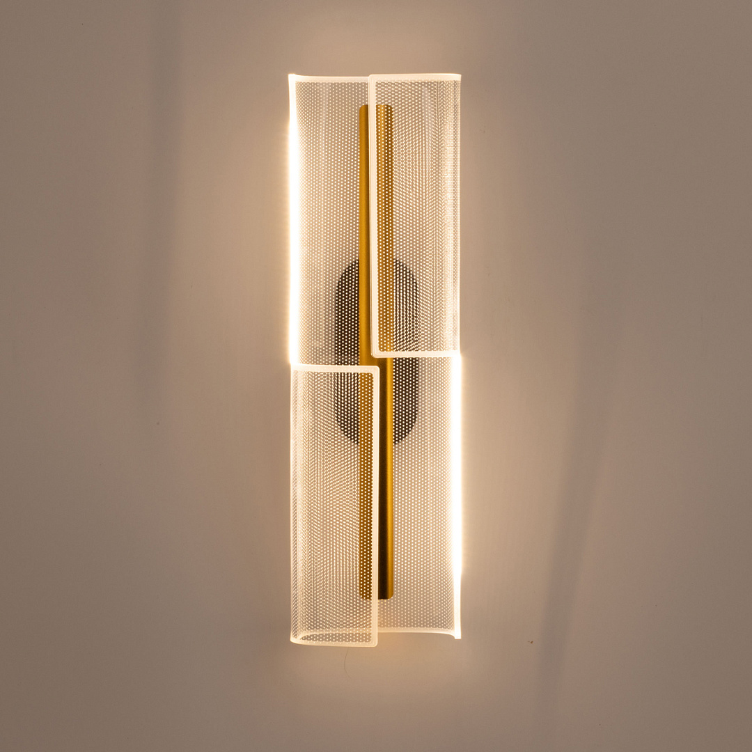 Для придания дополнительного шарма в настенном бра гармонично сочетается глубокий черный цвет и цвет золота. Эффектный плафон из прозрачного акрила с рисунком красиво преломляет свет. Многорежимность с изменением цветовой температуры от 3000К до 6000К является элементом светодизайна и позволяет подобрать комфортную температуру света с помощью настенного выключателя. Качественные светодиоды и корпус из сплава алюминия обеспечивают яркое освещение и долгий срок службы.