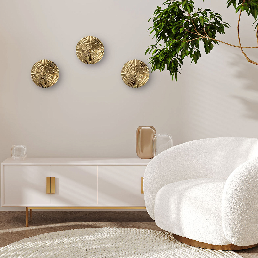 Латунь придает изделию теплый и богатый золотистый оттенок, который отлично сочетается с различными стилями интерьера, от классического до современного. Такой цвет добавляет роскоши и элегантности пространству.Плафон из металла может создавать мягкий и равномерный свет, что делает его идеальным для создания уютной атмосферы в комнате. Это особенно полезно в зонах отдыха, таких как спальни или гостиные.Многорежимность с изменением цветовой температуры от 3000К до 6000К является элементом светодизайна и позволяет подобрать комфортную температуру света с помощью настенного выключателя. Качественные светодиоды и корпус из сплава алюминия  обеспечивают яркое освещение и долгий срок службы. Светодиодные источники света экономичны и безопасны.