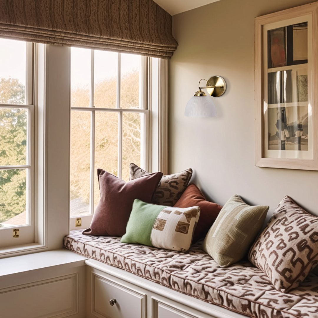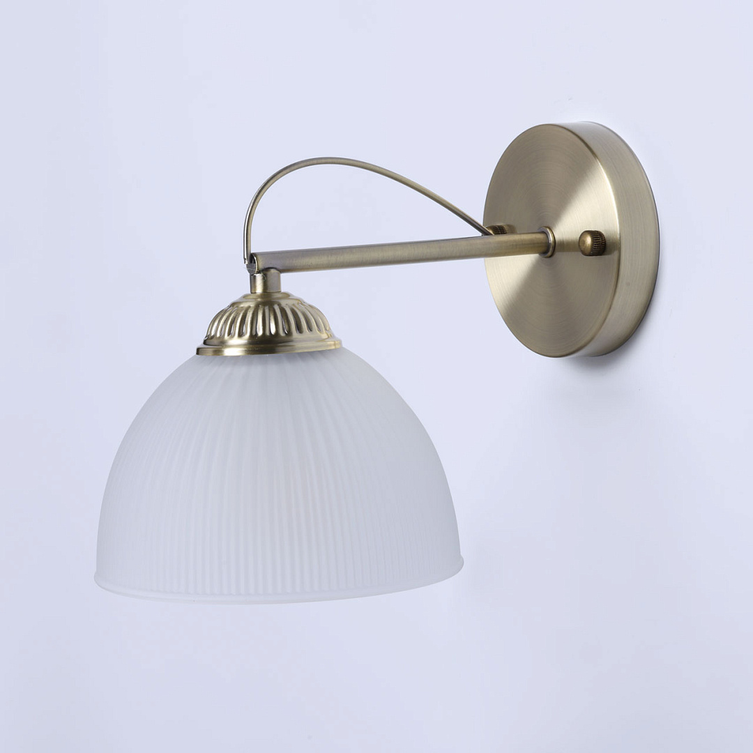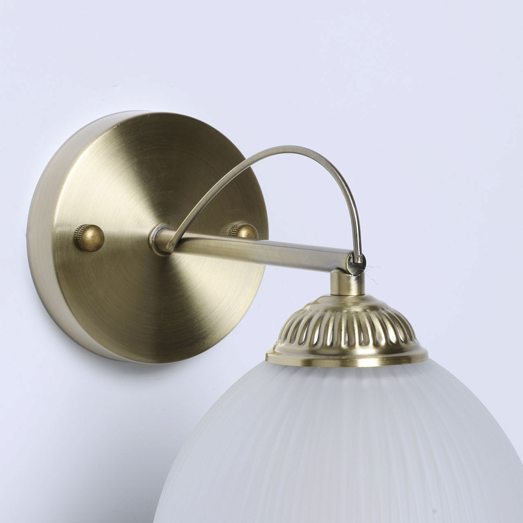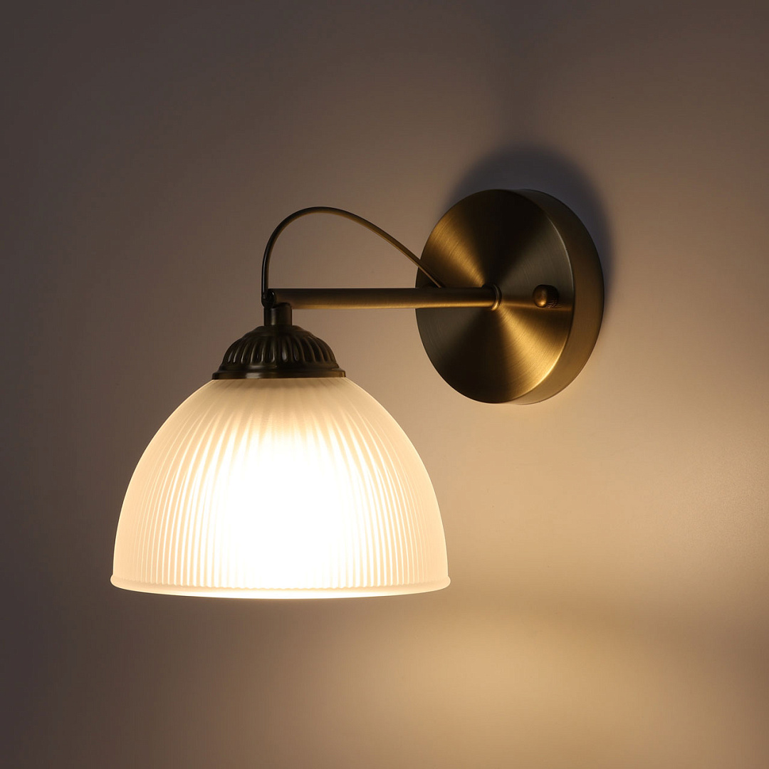 Благодаря сочетанию цвета античной бронзы и матового стекла настенное бра привнесет в интерьер атмосферу уюта. Свет, смягченный плафоном, создает мягкое местное освещение. Заменяемые источники света удобны в эксплуатации.
