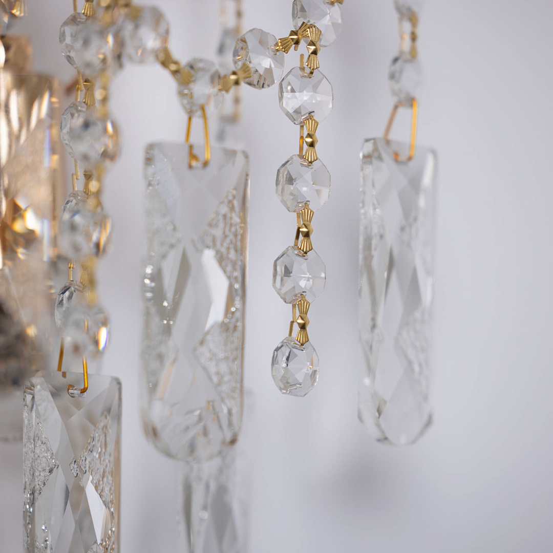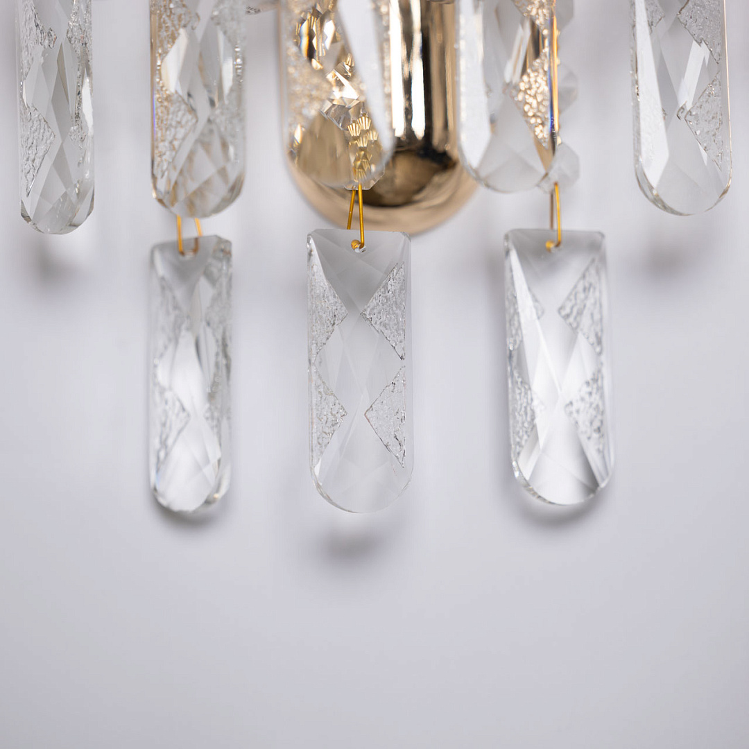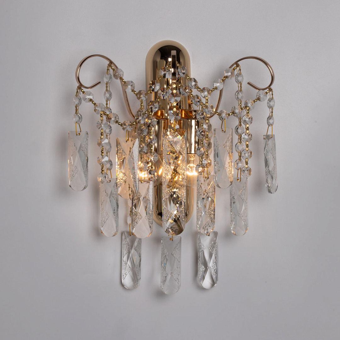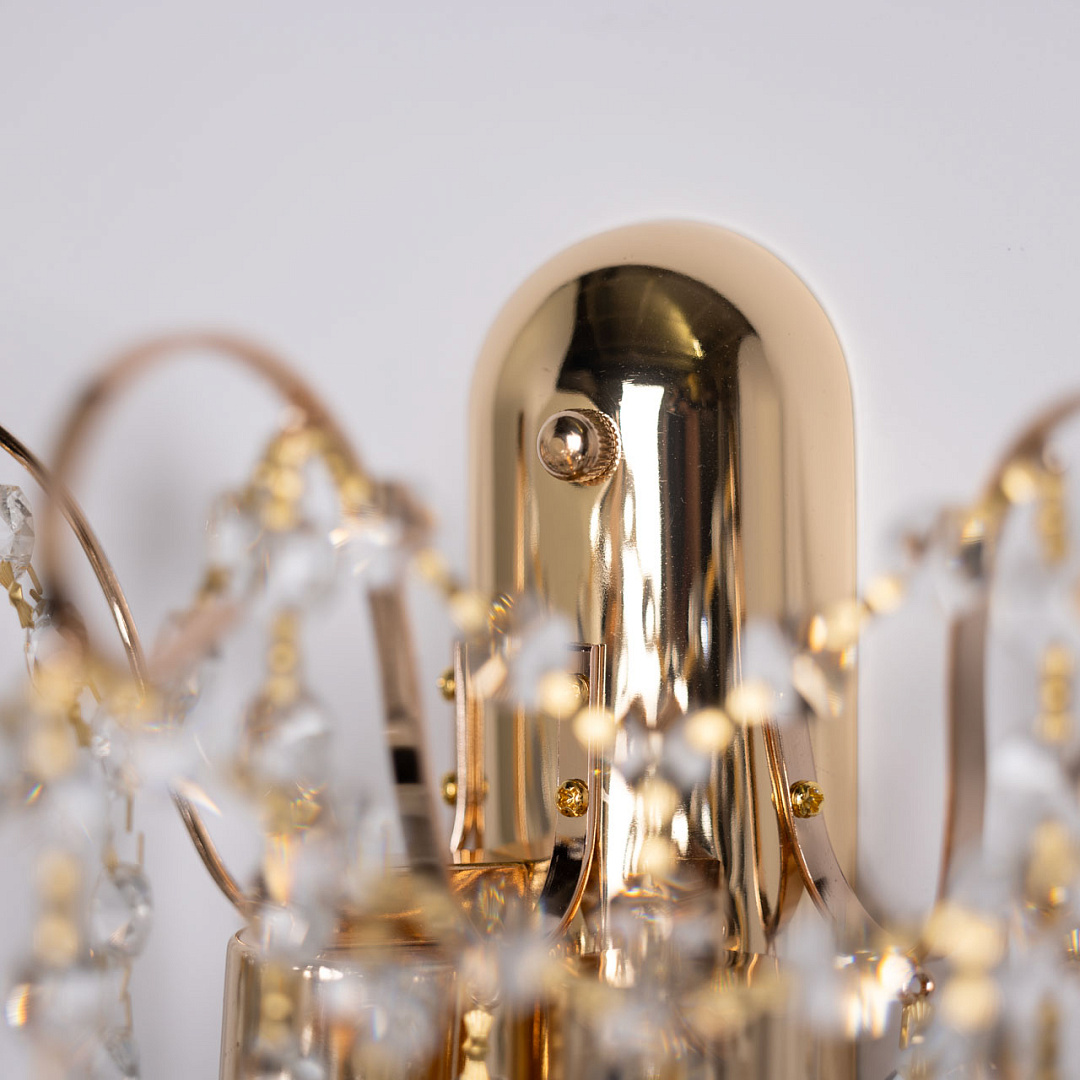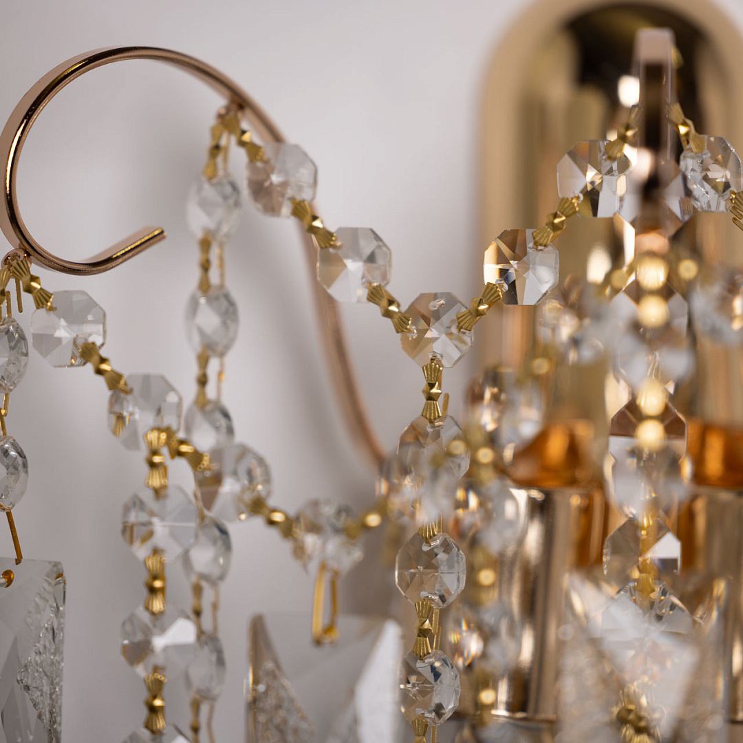 Актуальный цвет золота подойдет как в классический, так и в современный интерьер.Прозрачный хрусталь создает красивую игру света.Заменяемые источники света удобны в эксплуатации.